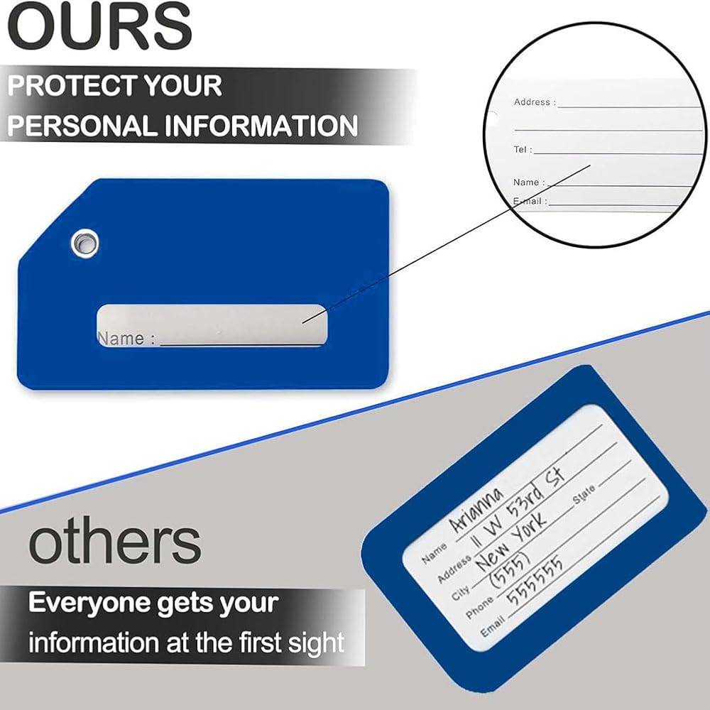 • Privacy Protection: You can write your personal information on the card inside the bag tags for luggage to identify your belongings in case of loss. Our travel tags for luggage are designed to protect your privacy by displaying only your name and not disclosing other personal information, giving you peace of mind.