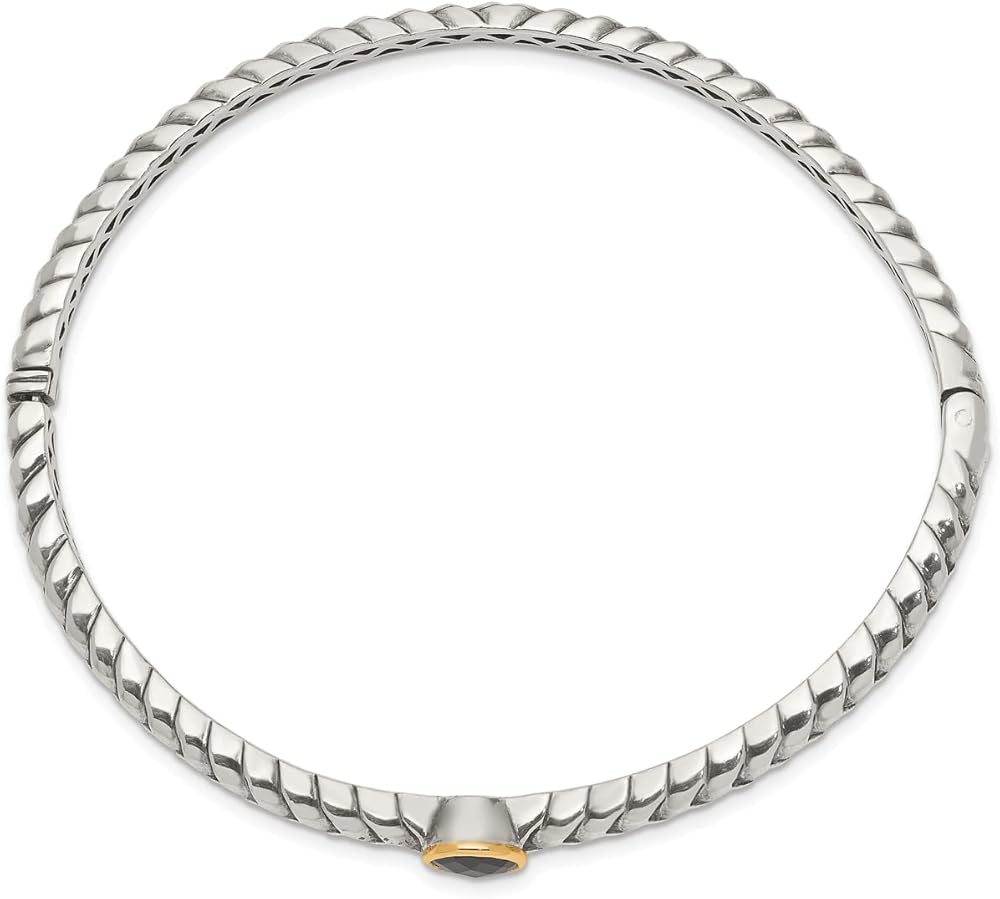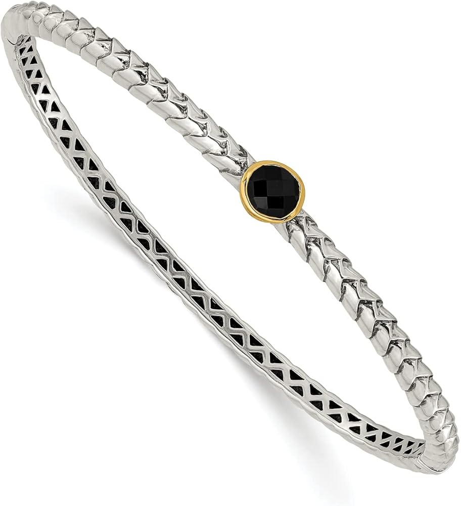 سوار Lex & Lu من الذهب الأصفر عيار 14 قيراط مع الفضة الإسترليني العتيقة مقاس 6 ملم من العقيق اليماني