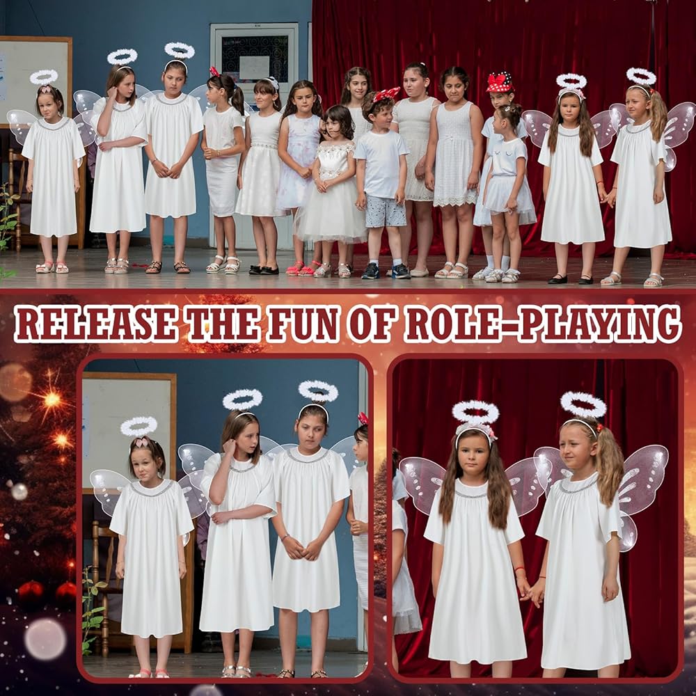 • Package Includes: you will get 24 pieces of Christmas wings and 24 pieces of headbands; Adequate quantities and beautiful colors can satisfy your kids requirements for cosplay and sharing needs