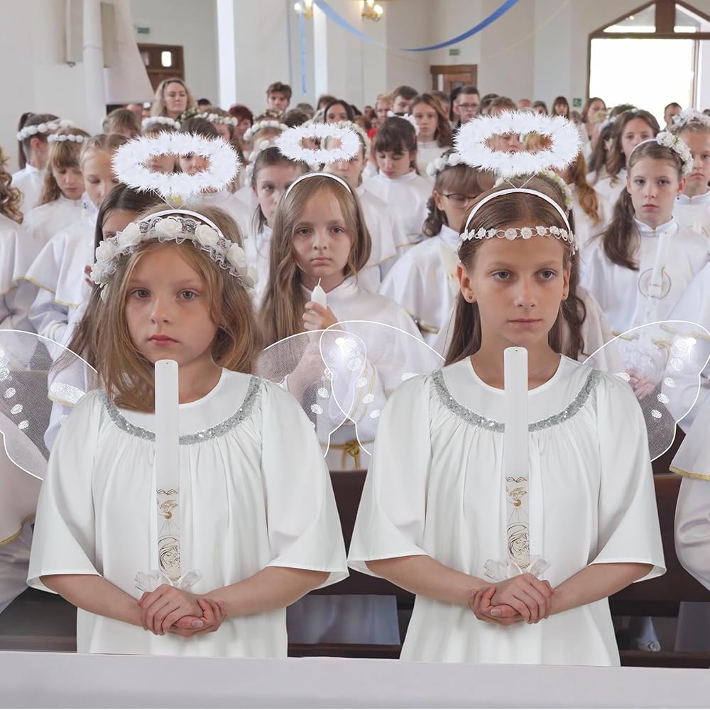 Chuangdi 48 قطعة أزياء المهد للأطفال أجنحة وعصابات الرأس للأطفال كنيسة رياض الأطفال بسيطة المهد اللعب النصي