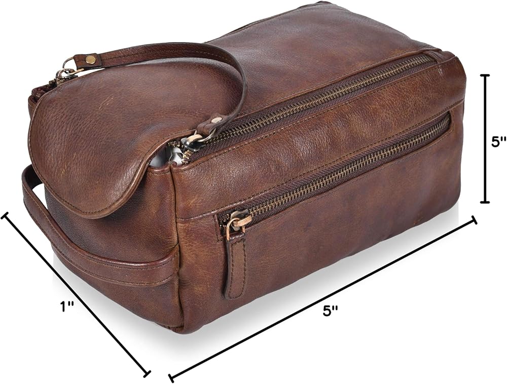 Unique Gift Idea : This leather toiletry bag makes a unique and timeless gift with its classic brown vintage style. Each wash kit has a distinct appearance, making it as unique as your loved one. Impress the hard-to-buy-for men in your life with this special dopp kit for men. It's perfect for birthdays, anniversaries, Father's Day, Christmas, and more.