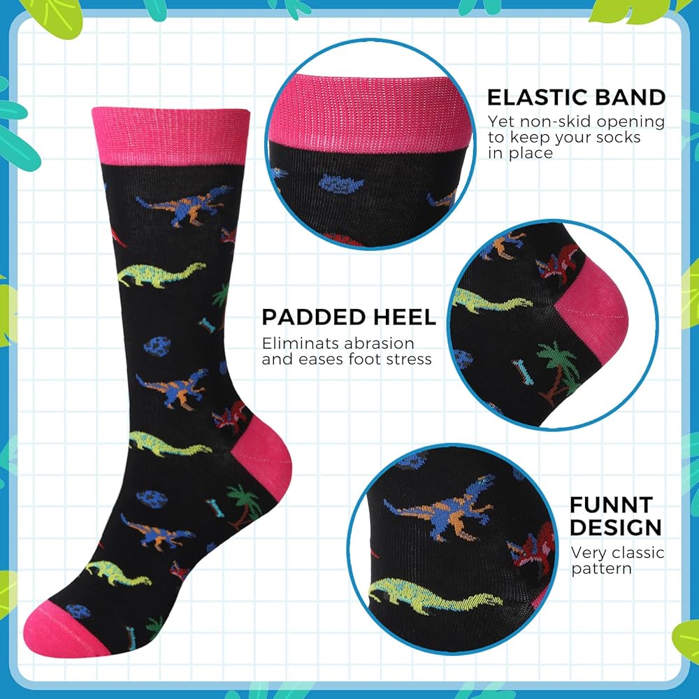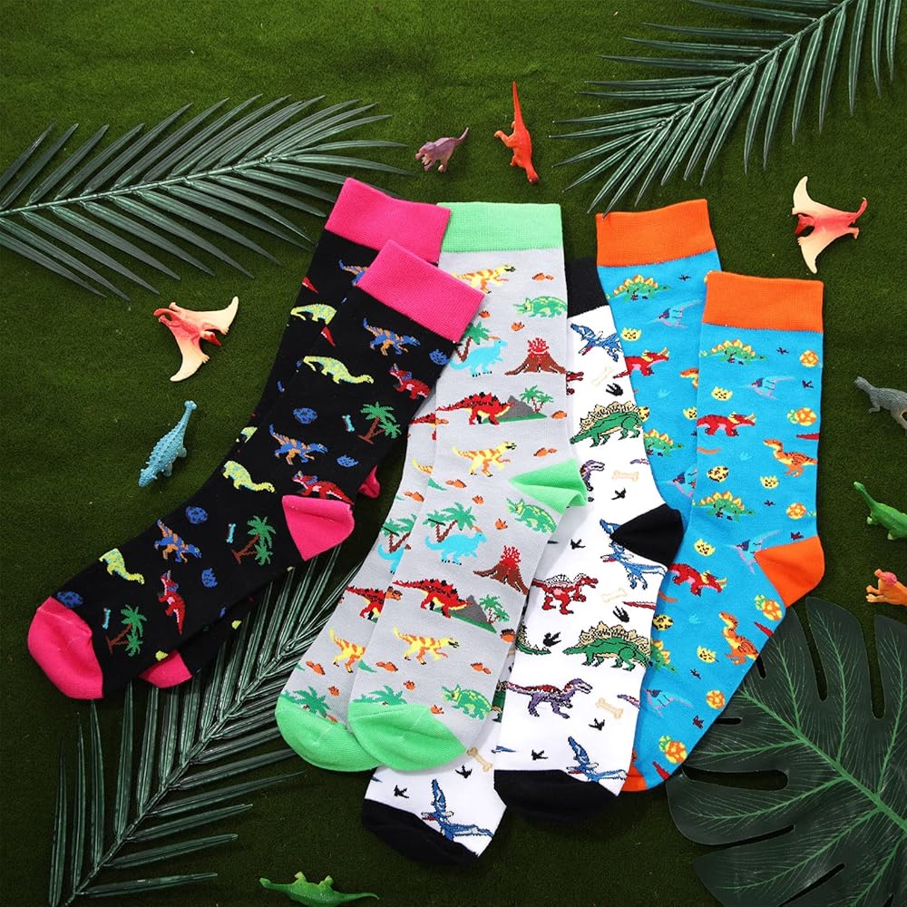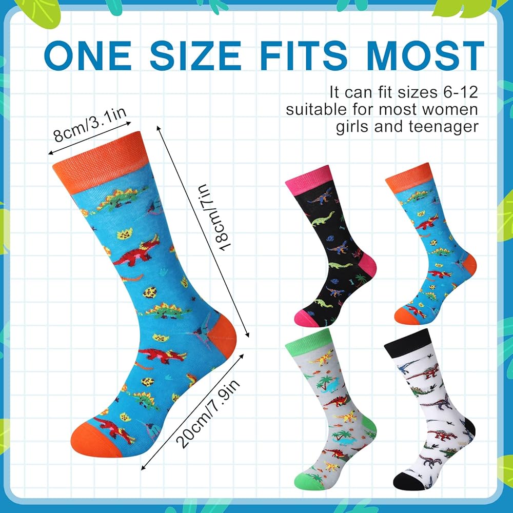 4 أزواج من الجوارب النسائية المضحكة على شكل حصان الديناصورات، جوارب رياضية مبتكرة غير رسمية على شكل طائر طنان هدية عيد الميلاد لمحبي الحيوانات (نمط الديناصورات)، 6-12