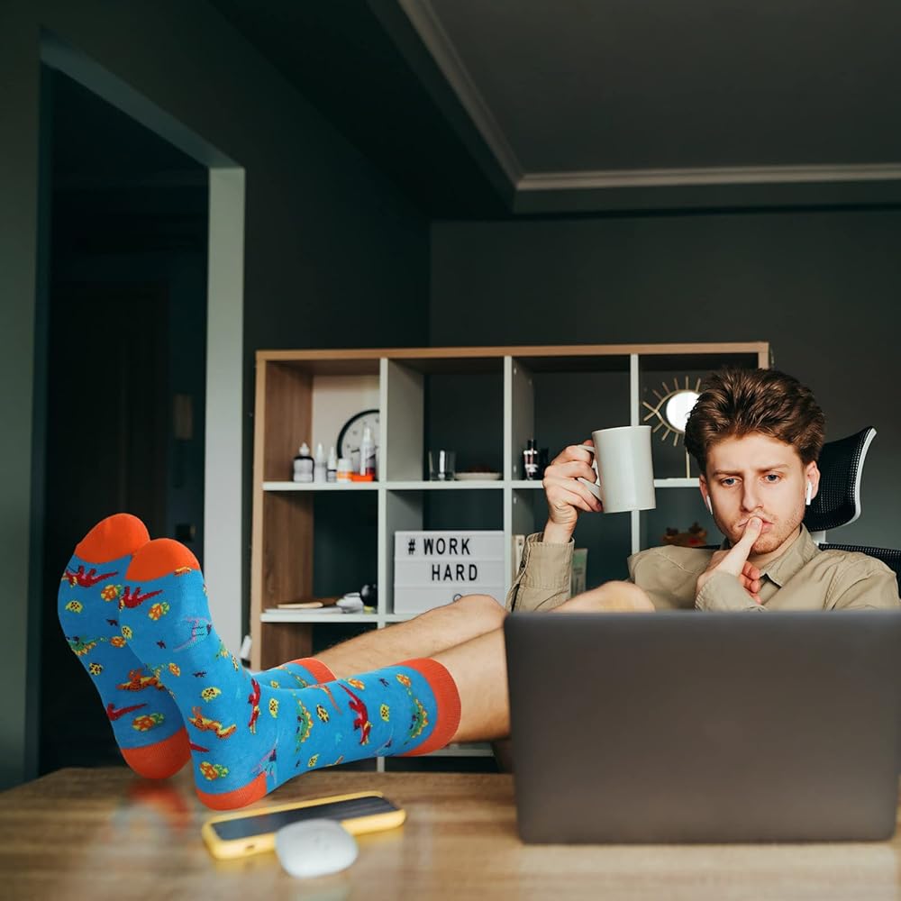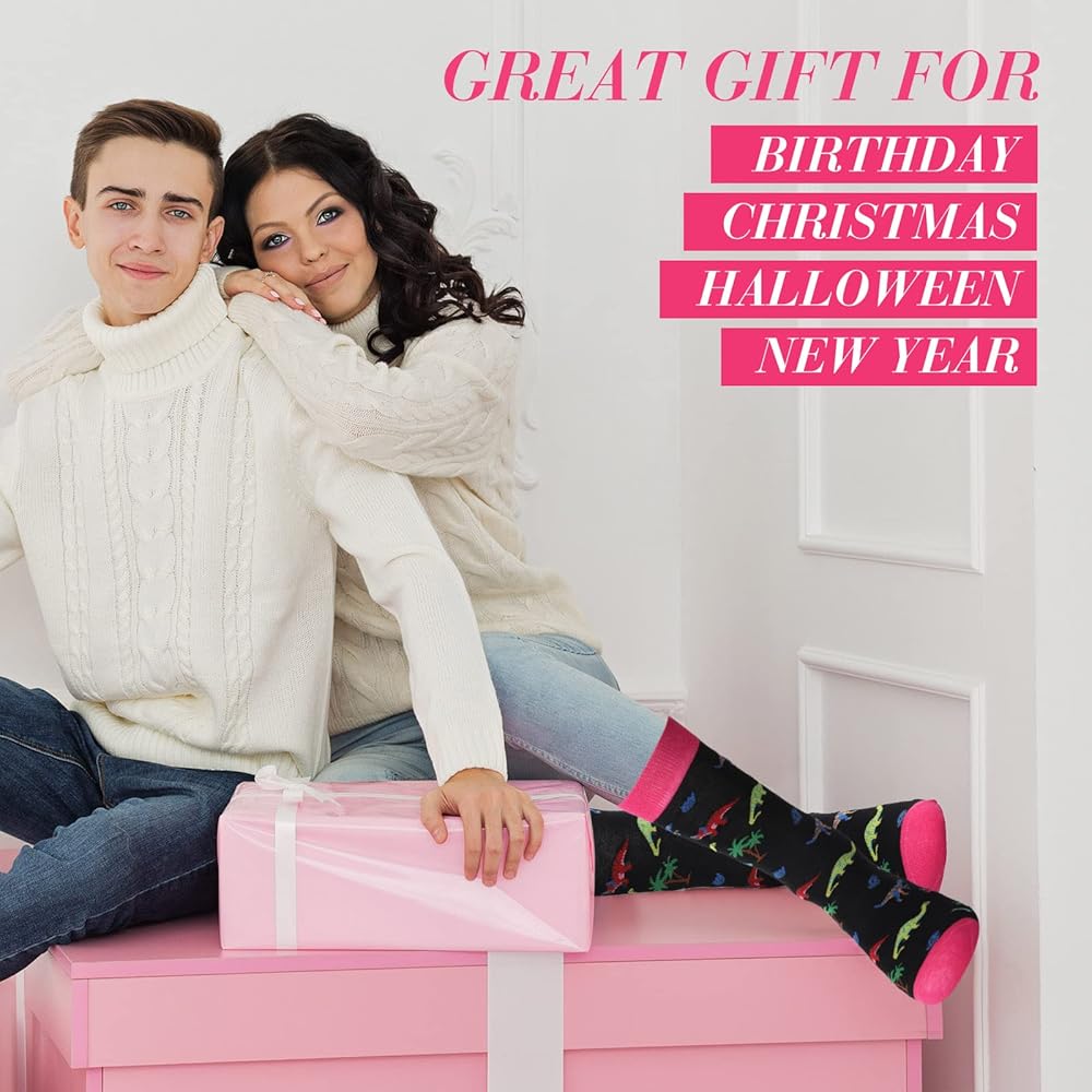 • Dinosaur Theme Socks: the socks use colorful galloping dinosaurs as the main patterns and the embellishments of dinosaur shoes make the socks more attractive, nice presents for dinosaur lovers, your mother, father, husband, wife, sons, daughters, boyfriend, girlfriend, grandma, grandpa, brothers or sisters, and applicable for dinosaur trainer gifts, dinosaur owner gifts and equestrian gifts
