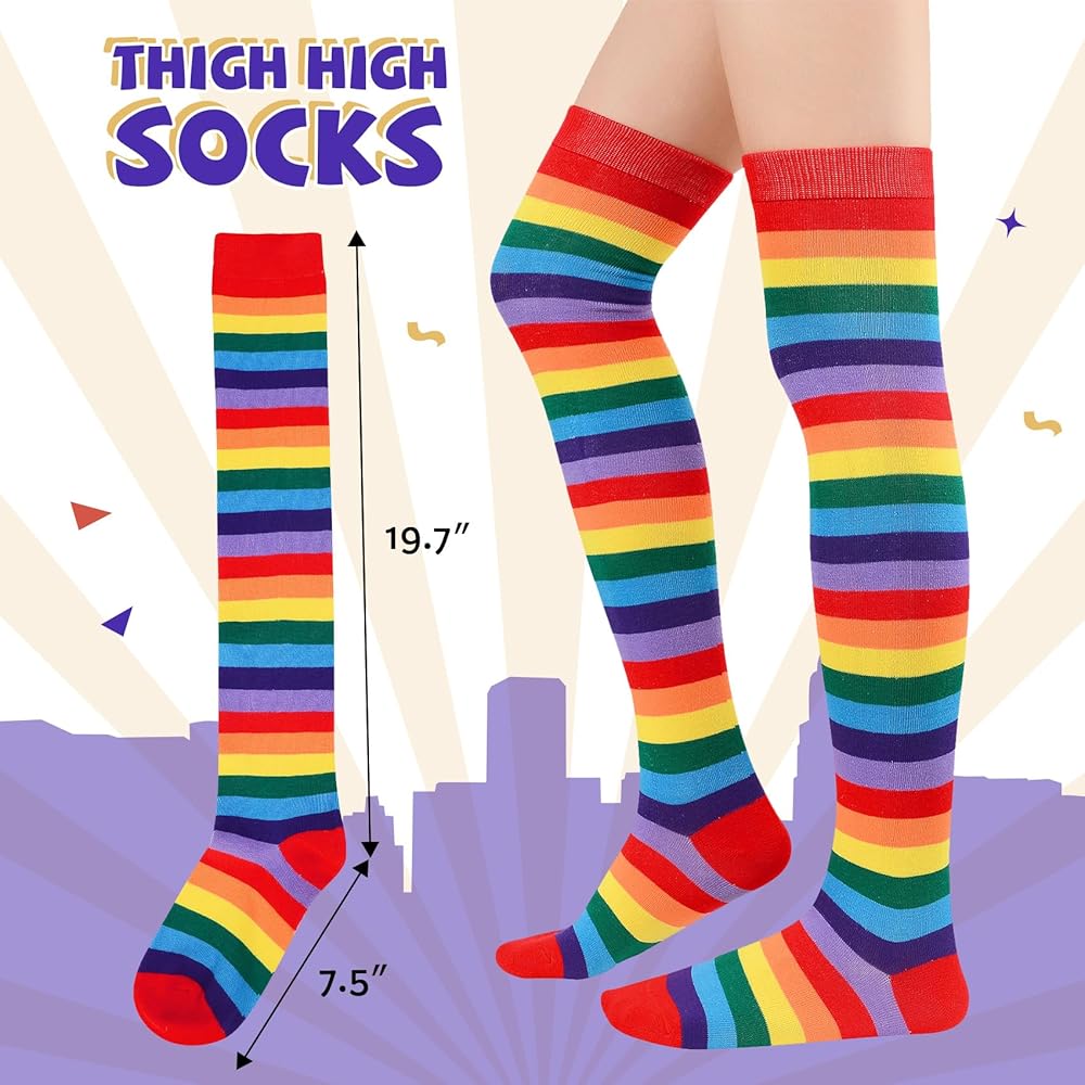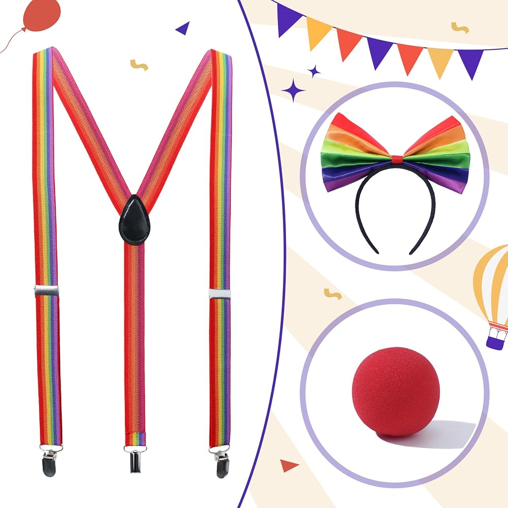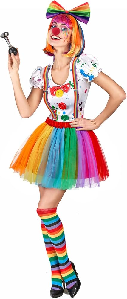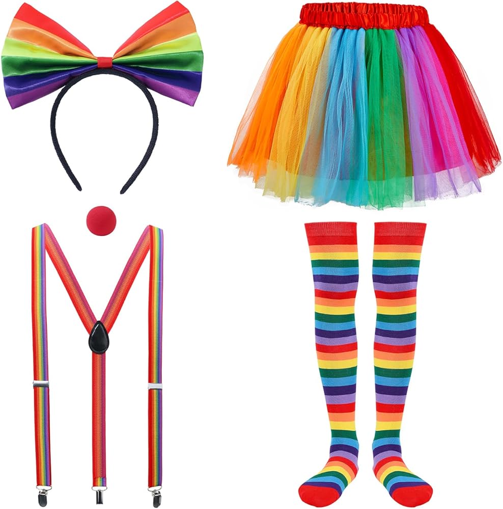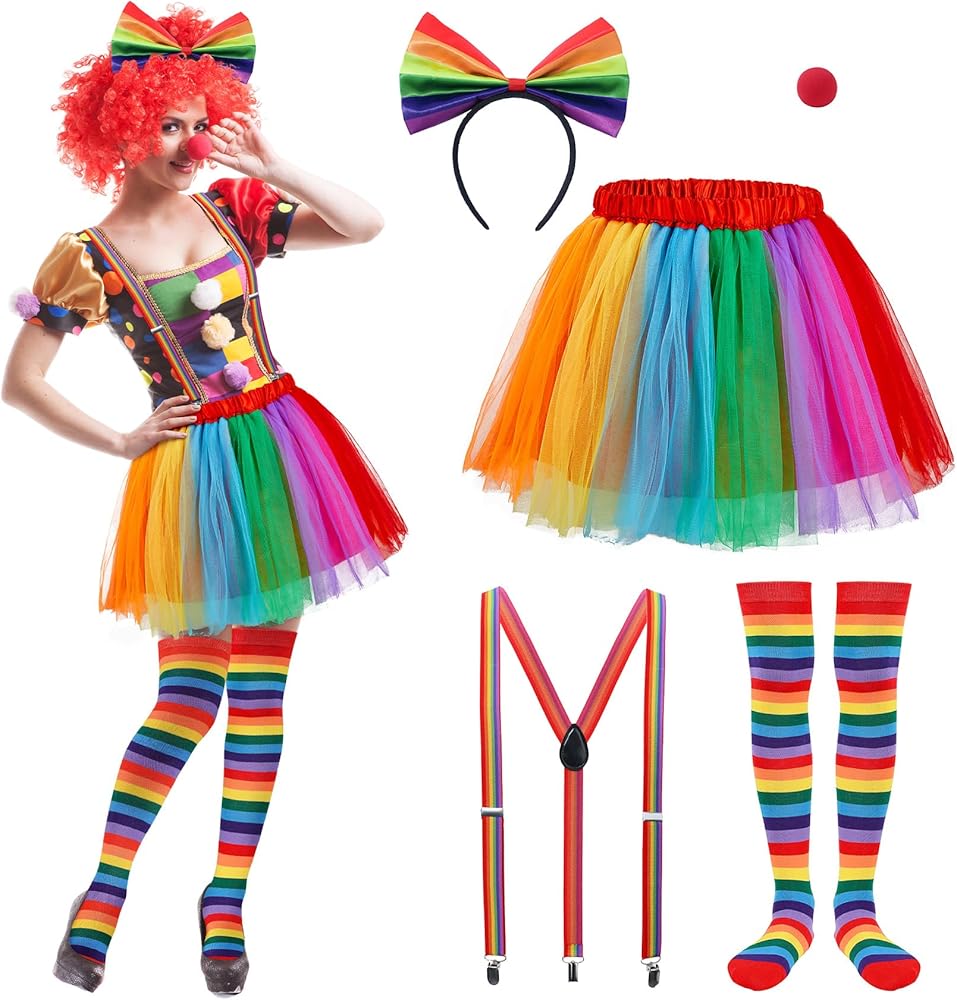 تصميم كلاسيكي بألوان قوس قزح - تتميز بألوان قوس قزح نابضة بالحياة ولافتة للنظر، وقد تم تصميم هذه الأزياء لجذب الانتباه وتوفير جمالية ممتعة وحيوية مناسبة لمجموعة واسعة من المناسبات، بما في ذلك الهالوين، وماردي جراس، وشهر الفخر، والحفلات، والعروض المسرحية. .