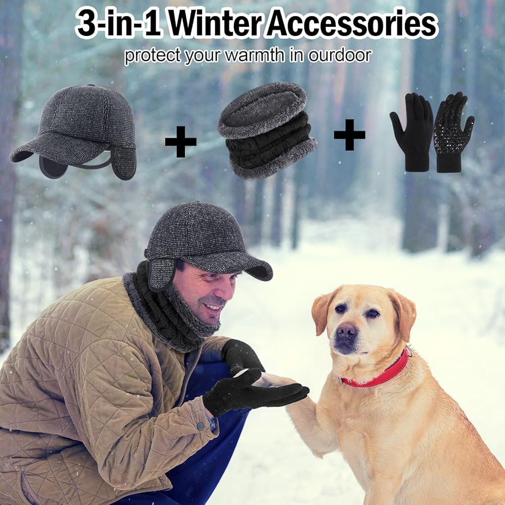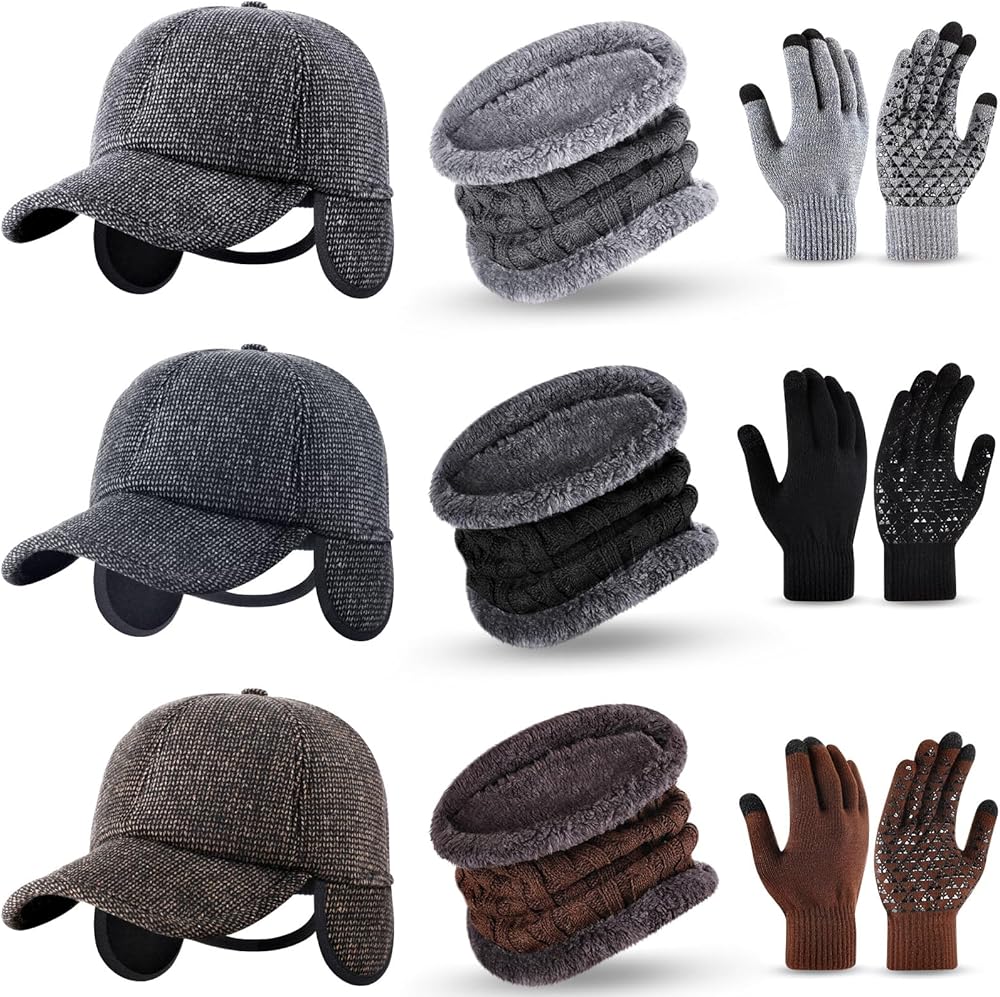 Complete Winter Combo: this complete winter set comes with 3 pcs winter baseball caps with ear flaps, 3 pairs of touchscreen gloves, and 3 pcs neck warmers to protect you from cold; Made specifically keeping your warmth and comfort in mind