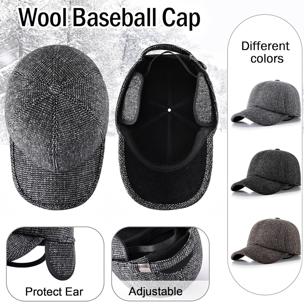 3 x Winter baseball caps with ear flaps