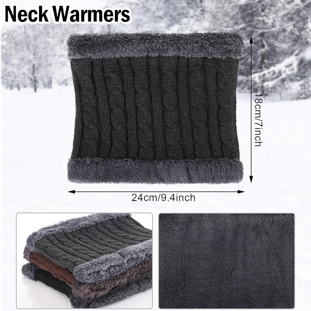 Ideal Size and Color Options: the hat has a head circumference of about 22-23.6 inches/ 56-60 cm; The neck warmer has a circumference of about 22-27.6 inches/ 56-70 cm, with a width of about 9.4 inches/ 24 cm; Available in 3 stylish colors: black, gray, and coffee