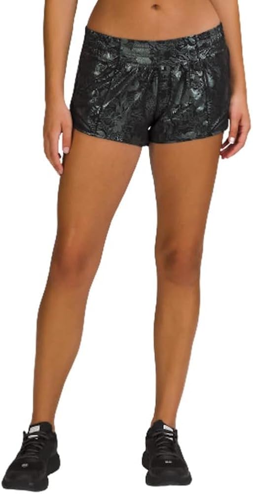 Lululemon Athletica Hotty Hot Short II 2.5 بوصة (مقاس 4، شعار مزدهر باللون الأسود قزحي الألوان/أسود)