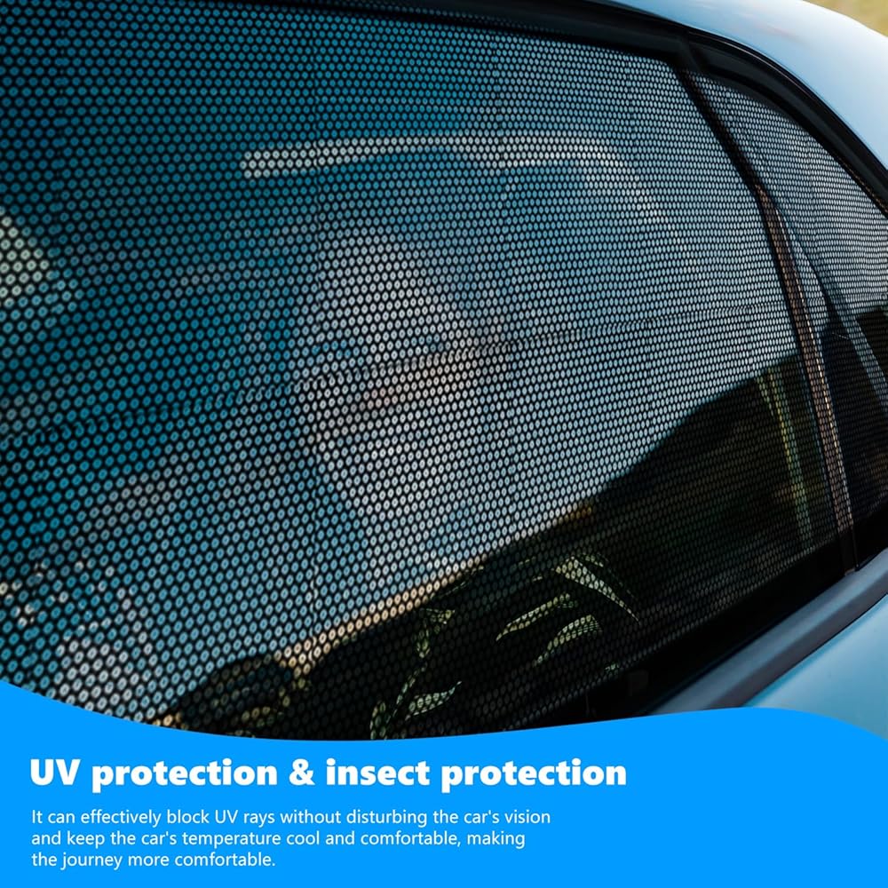 【High-Quality Materials】: Our car shades are made of high quality mesh material, thicker double mesh design can block can block the sun glare and heat, protect your family and friends skin and eyes. Small mesh ventilation and breathable, can keep the air inside the car fresh and odor-free.
