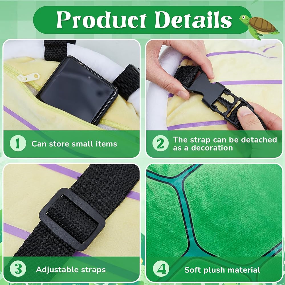 Comfort Meets Convenience: the detachable shoulder straps provide maximum comfort and versatility, and can be applied not only as a backpack, but also as a turtle toy; Adjust the straps easily according to the user's preference; Featuring a size of about 11.8 x 11.4 inches, these funny backpacks offer plenty of room for your little one's belongings