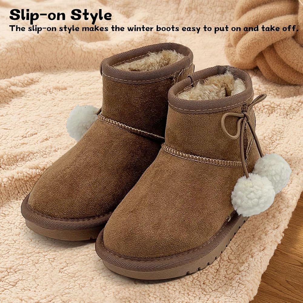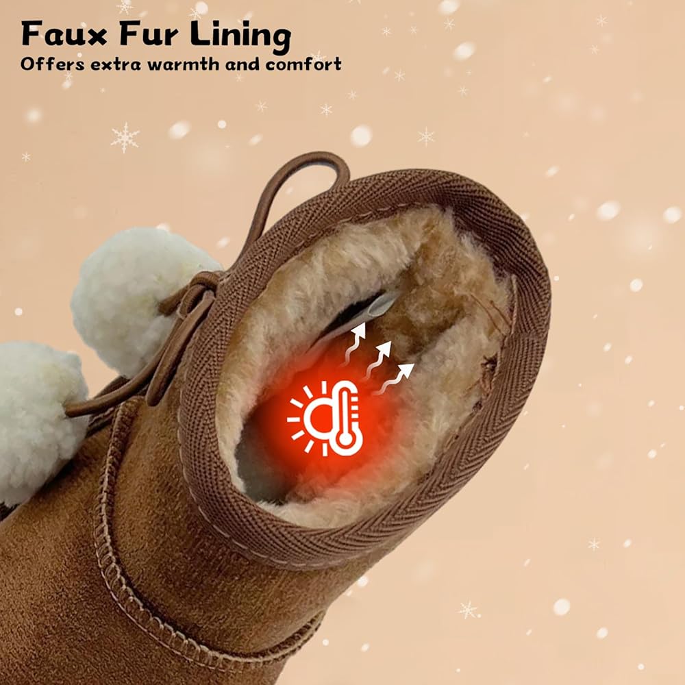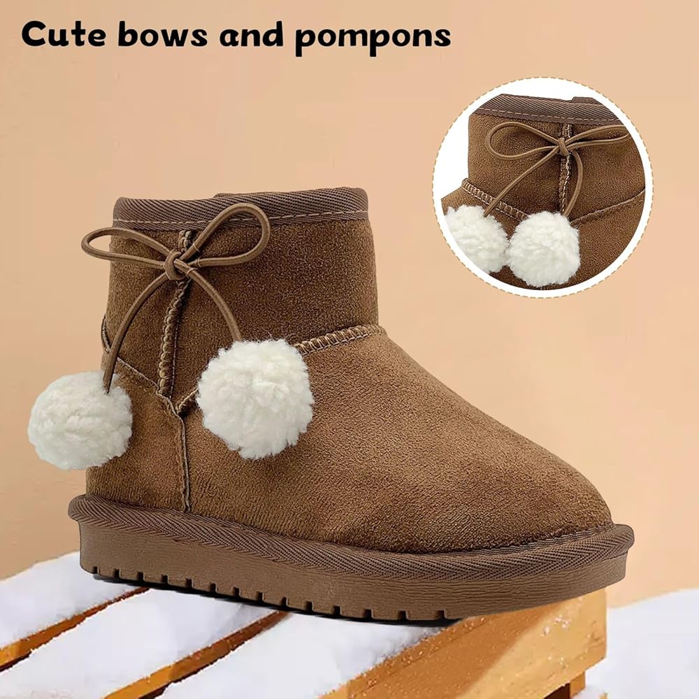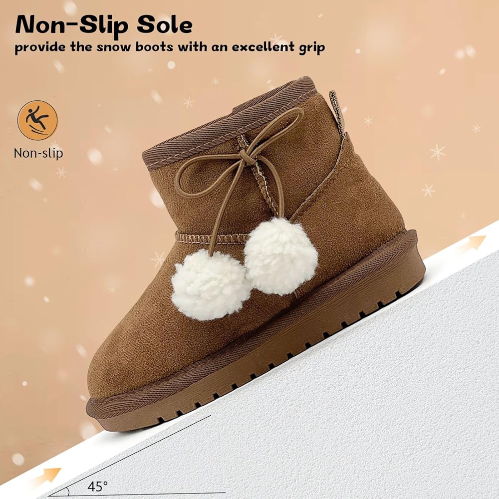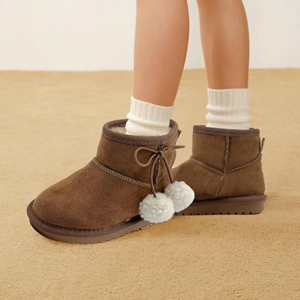 مظهر لطيف: تتميز أحذية الثلج للأطفال هذه بجسم بلون ثابت مع فيونكات لطيفة وكرات صغيرة، وتتوافق مع مختلف الملابس الشتوية مما يجعل الأطفال يبدون أكثر جاذبية.