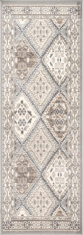 Let the nuLOOM Becca Traditional Tiled Area Rug bring a touch of elegance to your home. This large rug, 2x6 in size, is perfect for those large rooms in your home. Its beige color brings a calming presence, making it an ideal choice for both the living room and bedroom. The rug's traditional geometric design lends a sophisticated touch to any decor style, from modern to rustic. This power-loomed rug is not just about beauty, it's also about durability. It is made to withstand high traffic areas in your home, perfect for family gatherings or children's playtime. The medium pile of this rug feels comfy underfoot, a luxury you'll appreciate every day. But don't let its softness fool you, this rug is also stain-resistant, a great choice for households with pets or kids. No more worries about spills or accidents, the nuLOOM Becca rug is here to handle it all. Its stain-resistant quality ensures it remains in pristine condition, maintaining its appeal for years to come. It's the perfect mix of style and practicality. The nuLOOM area rug is more than just a carpet for your living room or bedroom. It's an investment in your home's comfort and style. It's the perfect area rug for those looking for a balance between comfort and aesthetics. This large area rug will not only enhance the beauty of your home but also provide a cozy surface for your feet, turning an ordinary room into a comfortable haven. This rug has a clearance that is perfect for any room size. Whether it's a large living room, bedroom, or a small nursery, this rug will fit perfectly. It provides a comfortable and soft surface for your little ones to play on, making it an ideal nursery rug. The nuLOOM Becca rug, with its distressed and transitional design, will seamlessly blend with your existing decor. It's the perfect carpet for your living room, a modern rug for a contemporary space, or a traditional rug for a classic home. It's a versatile rug that can transform any space, making it the perfect addition to your home. Experience the nuLOOM Becca Traditional Tiled Area Rug. It's not just a rug, it's the heart of your home.