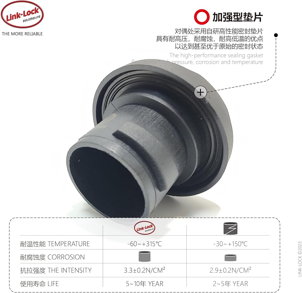 The LINK-LOCK sealing assembly has been optimized and improved, and is assembled with self-developed high specification sealing gasket, which has the advantages of high pressure resistance, corrosion resistance, high and low temperature resistance to achieve or even better than the original sealing state. The appearance and function of each product are perfectly matched with OE original accessories, and can be delivered for use only after rigorous development and testing.