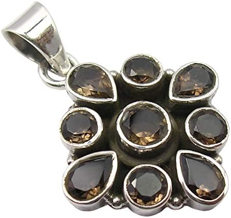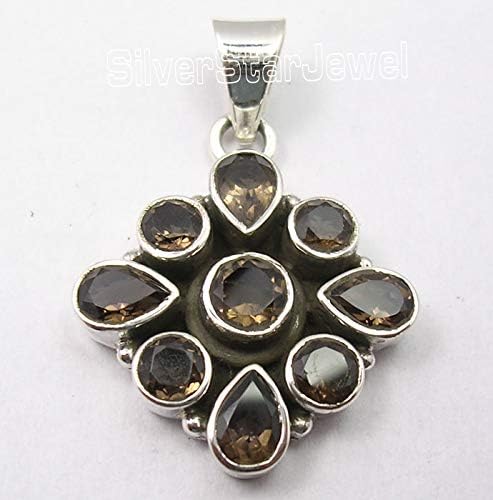 SilverStarJewel 925 Sterling Silver Drop, Round Smoky Quartz Pendant 1.3" New Gemstone