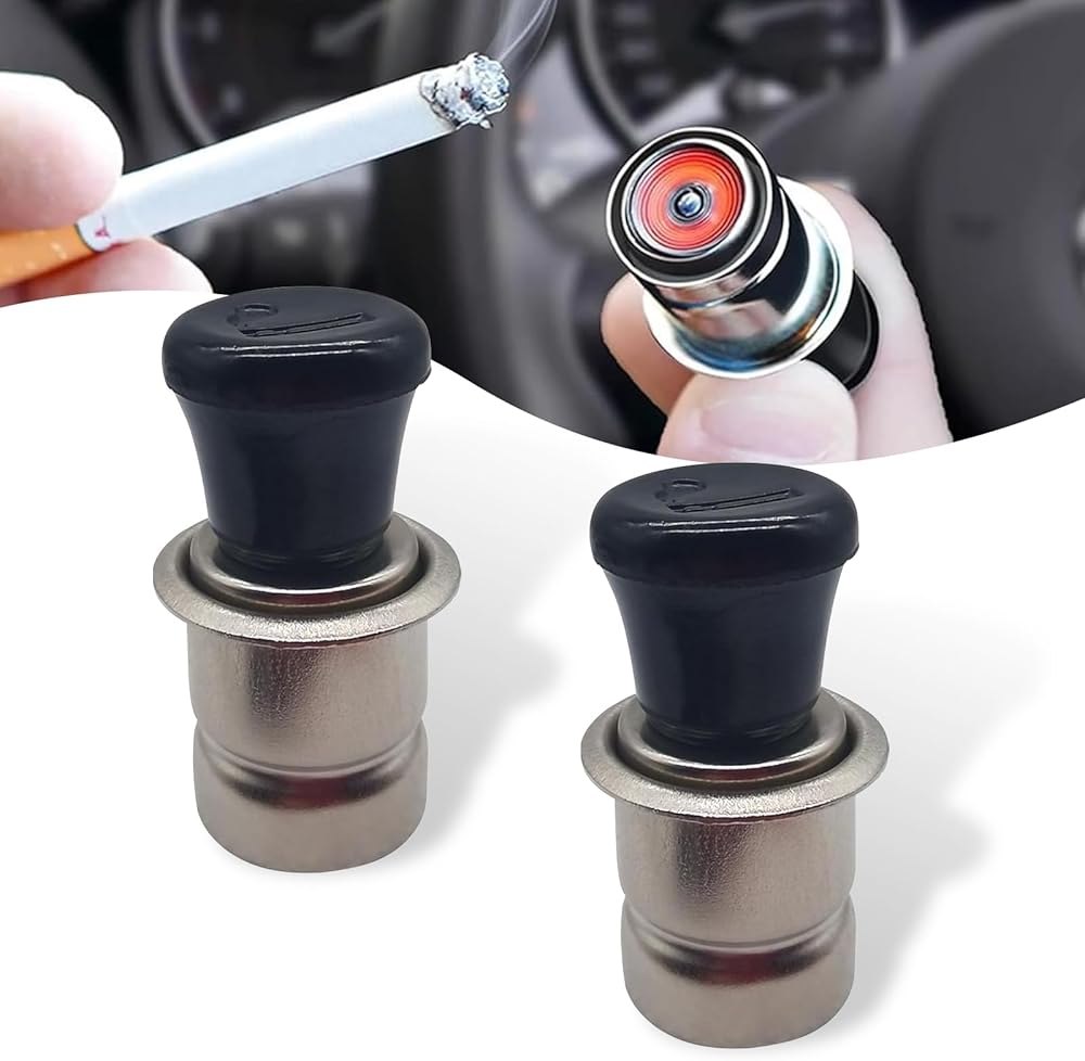 Sinytuto 2 PCS Car 12V Pop-up Cigarette Lighter, 1.8" x 0.9" x 0.79" Fast Heating Stainless Steel + Insulated Ceramic Ring Cigarette Lighter Socket, Suitable for Most Car Models (Black & Silver)