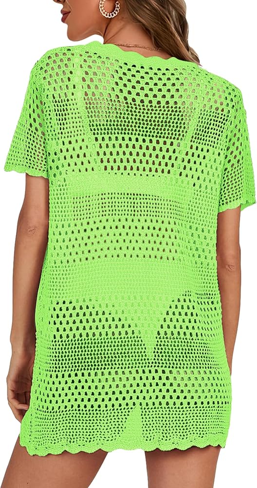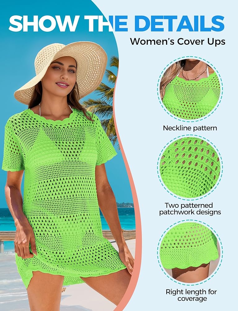 Unique Design: The crochet cover-up features a patterned crew neck, short sleeves, knit crochet, loose fit, and cut-outs for an effortlessly chic look. It is a must-have for beachwear, women's bikini cover-ups, and swim coverups for women. This women's swimwear cover-up is perfect for any beach or poolside occasion.
