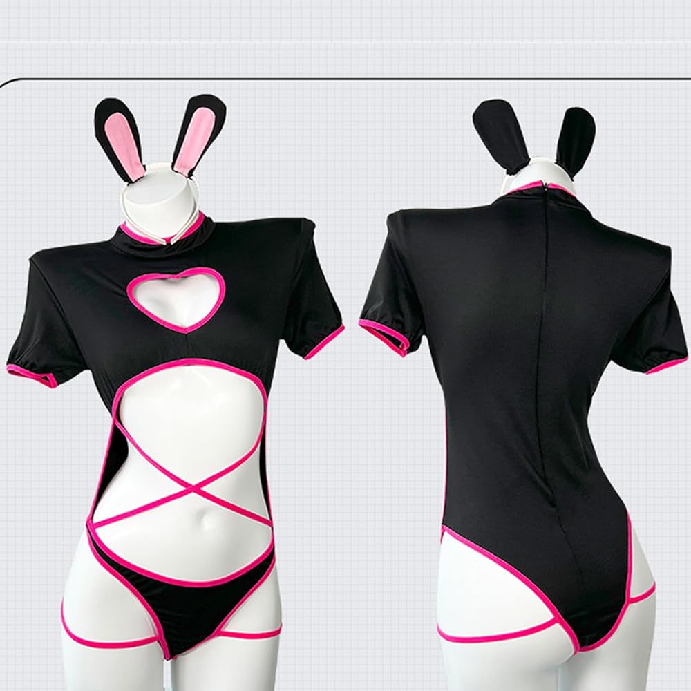 Womens bunny girl cosplay costume anime outfit cutout heart front one piece bodysuit lingerie set