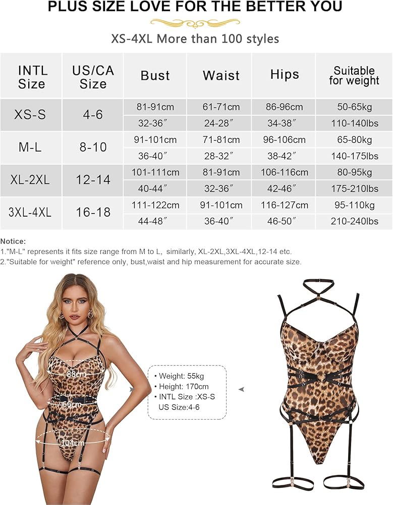مقاسات شاملة: نقدم هذه الملابس الداخلية بمجموعة واسعة من المقاسات، بما في ذلك المقاسات الكبيرة. بغض النظر عن شكل جسمك، يمكنك أن تشعر بالثقة والإثارة في بدلة الجسم الرائعة الخاصة بنا. الجميع يستحق أن يبدو ويشعر بأفضل ما لديه.