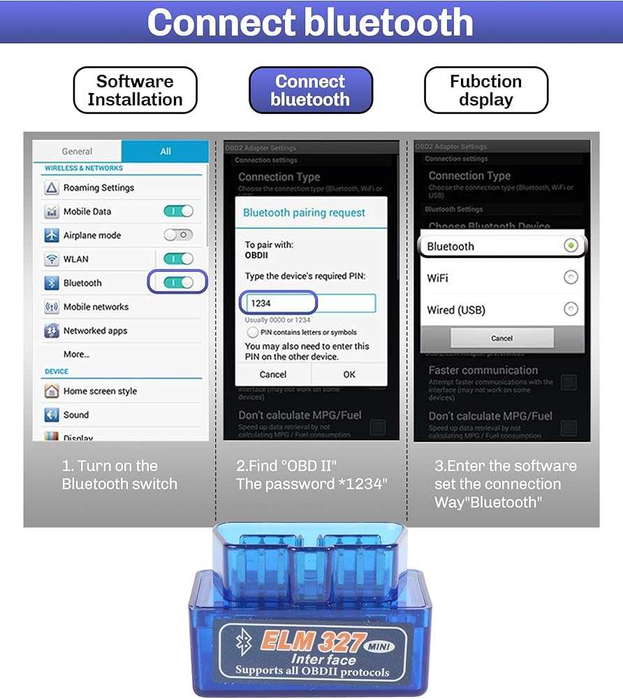 MINI ELM327 Bluetooth Functions: