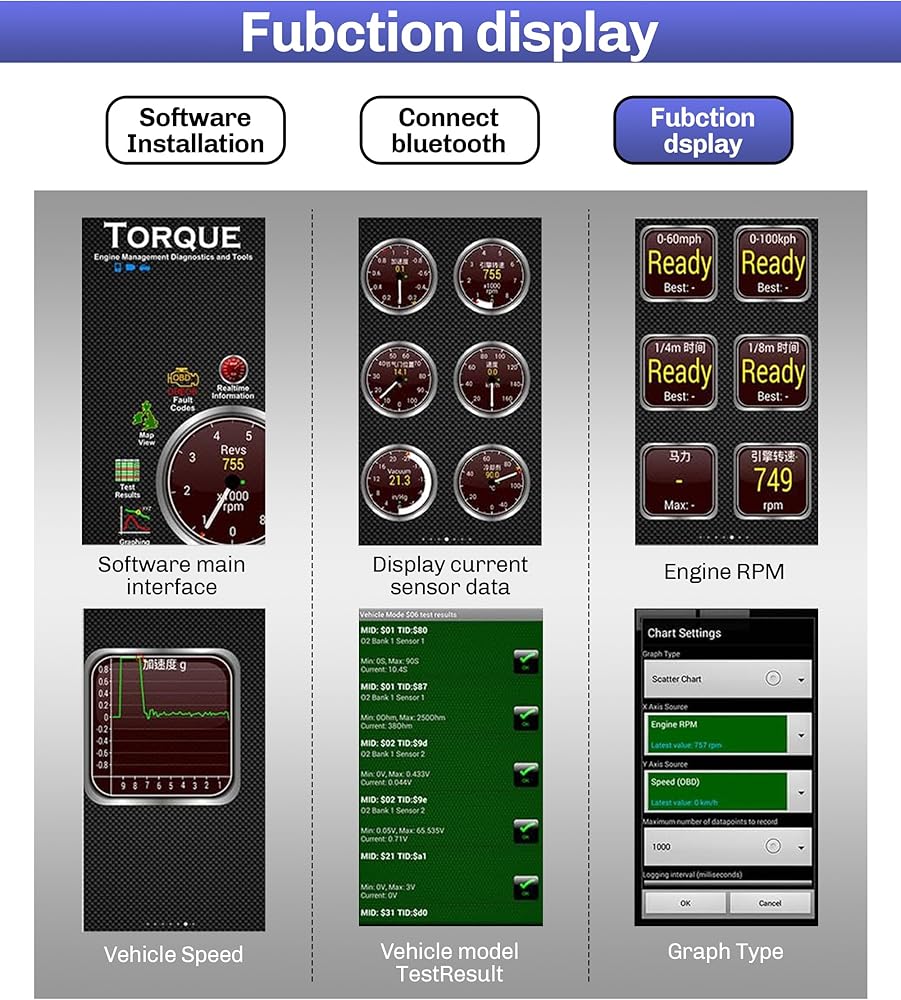 -Access the internal information of the vehicle through Bluetooth devices such as mobile phones, tablets, or laptops, for diagnosing, checking engine lights, and monitoring the car