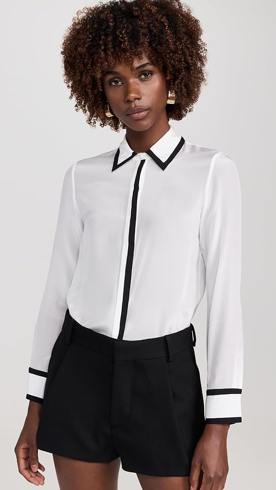 بلوزة ويلا للسيدات من أليس + أوليفيا بفتحة مع تفاصيل الأنابيب