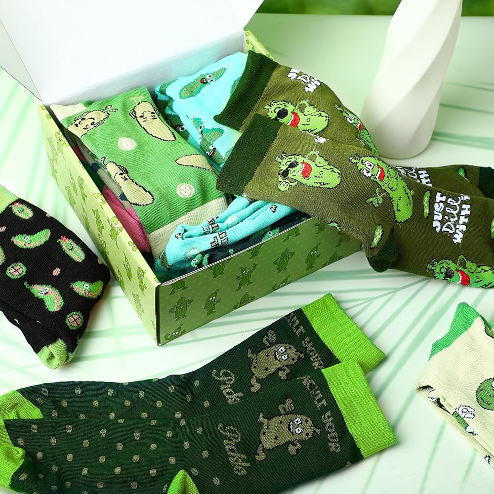 The Pickle Socks Gift Set is a delightful offering for pickle enthusiasts. Crafted with a playful pickle motif and humorous slogans, these comfortable and stretchy socks promise to add a touch of whimsy to any occasion. Whether as a thoughtful gift or a personal indulgence, the Pickle Socks Set celebrates the beloved pickle in a unique and stylish way, making it the ideal choice for adding a playful touch to one's wardrobe.