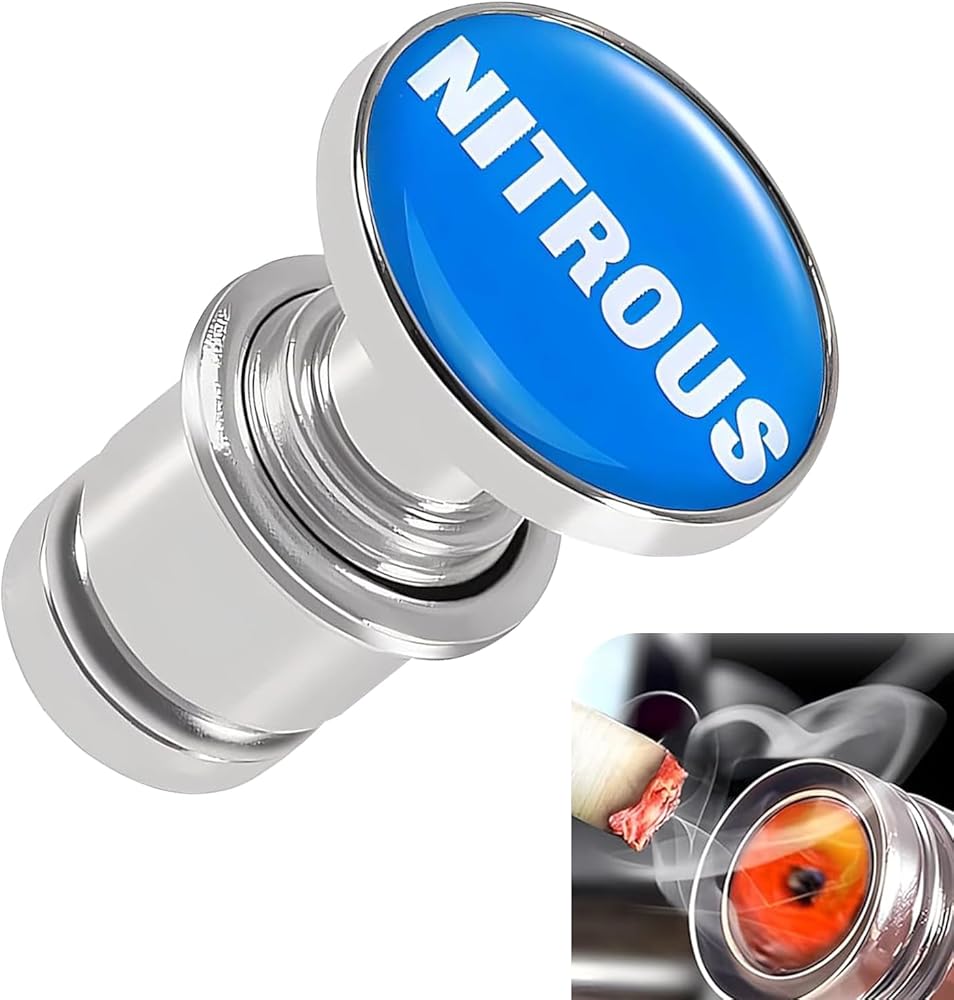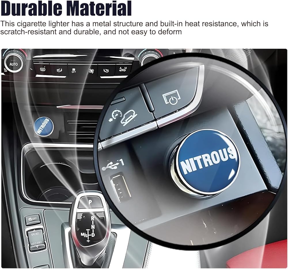 • Product Details: You will receive 1 x blue NITROUS cigarette lighter with overall dimensions of 1.8" x 1.2". There may be two reasons why the cigarette lighter cannot heat. The fuse of the cigarette lighter may be blown and needs to be checked and replaced. After the cigarette lighter is inserted too much, the circlip becomes loose or the size is inappropriate, resulting in the cigarette lighter not being fully heated. Just in case, please confirm size before purchasing.