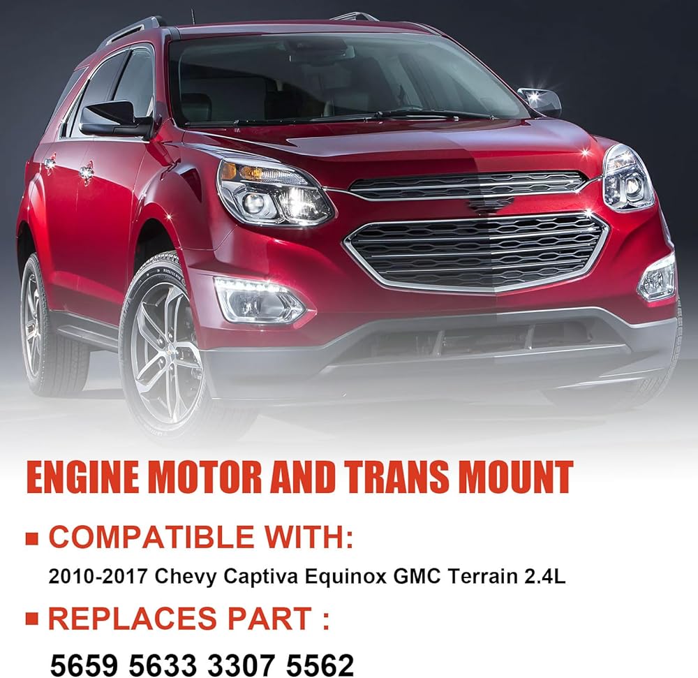 Engine Motor and Trans Mounts Compatible with 2012-2015 Chevy Captiva 2010-2017 Equinox GMC Terrain 2.4L, Replace OE 5659 5633 3307 5562 22774206 20840183 20839834 20840181