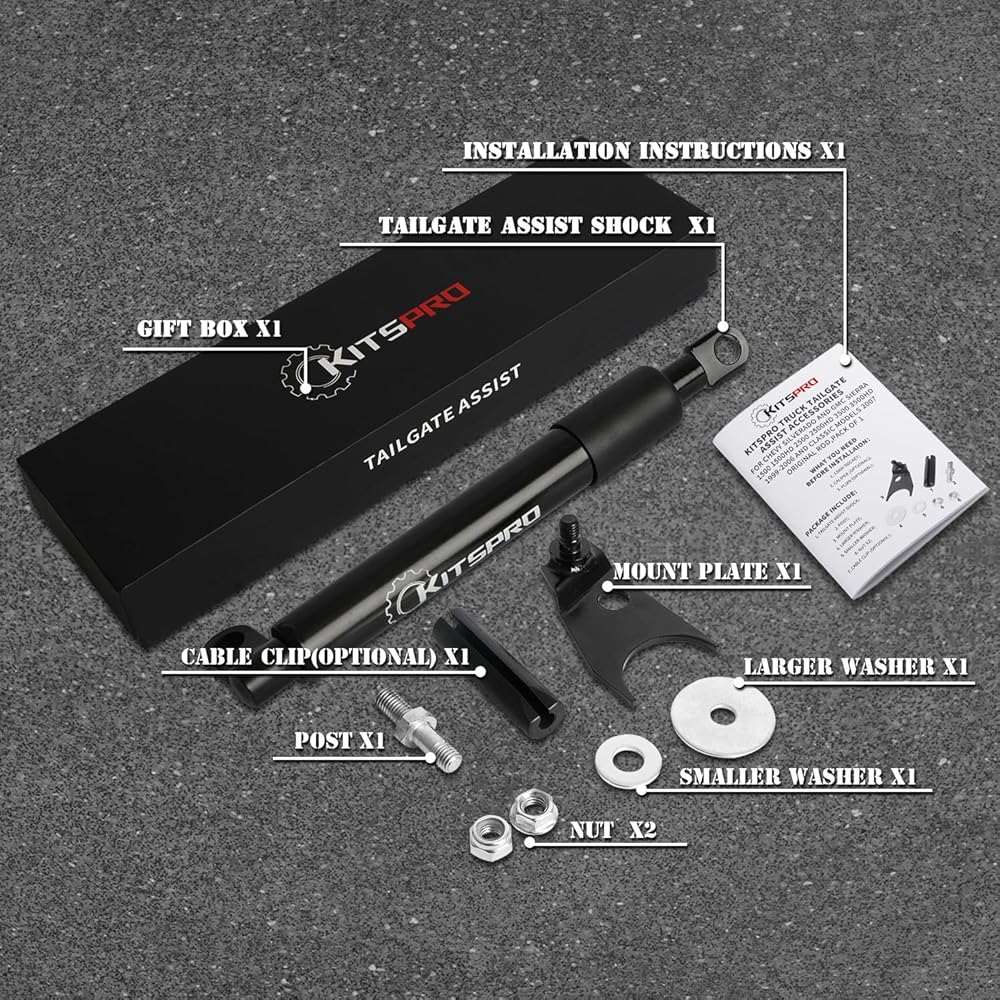 • سهلة التركيب: يمكن تركيب ملحقات مساعدة رفع الباب الخلفي للشاحنة KitsPro على الشاحنة في غضون دقائق دون الحاجة إلى الحفر! يرجى التكرم بالاتصال بنا إذا لم تتلق تعليمات التثبيت.