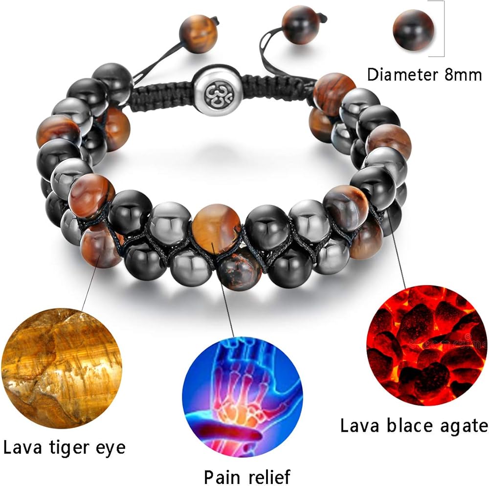 [سوار عين النمر مصنوع يدويًا]: حجر عين النمر الطبيعي المصنوع يدويًا وحجر العقيق الأسود يمكن أن يساعدك على التخلص من القلق والخوف. تمثل كل خرزة حالة عاطفية أو عقلية، يمكن أن يساعدك سوار لافا روك على امتصاص الطاقة السلبية وتحويلها، ويجعلك أكثر نشاطًا في الحياة.