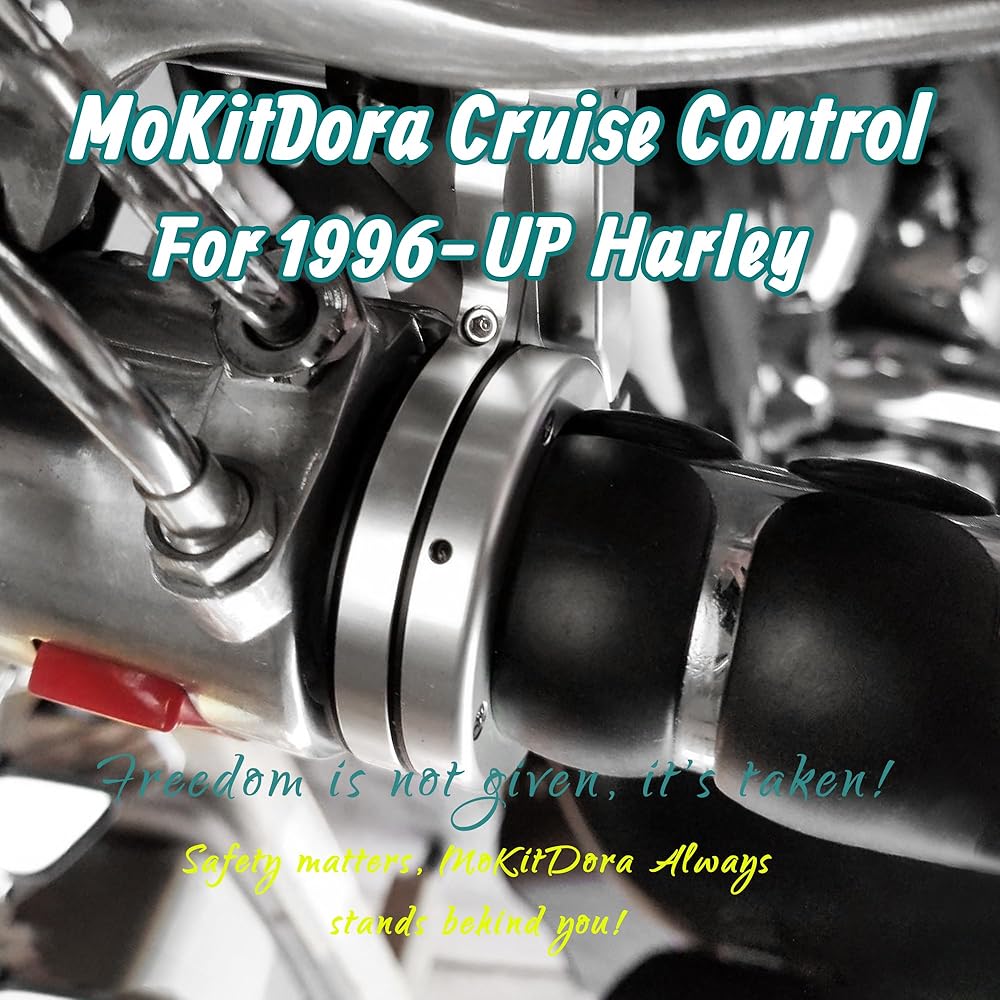 قفل خانق للتحكم في السرعة من MoKitDora لموديلات Harley 1996-up Touring Softail Dyna Sportster مع كابل خانق، كروم