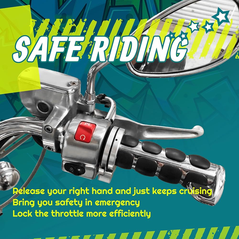 • استرخاء اليدين والذراعين - حقق السرعة المطلوبة، واضغط على زر تعشيق قفل الخانق وسوف تسمع وتشعر بنقرة إيجابية أثناء تعشيق الوحدة. الآن يمكنك إزالة الضغط عن يدك اليمنى والسماح للدراجة النارية بمواصلة الرحلة، وستشعر بمستوى غير مسبوق من الاسترخاء خلال رحلة طويلة