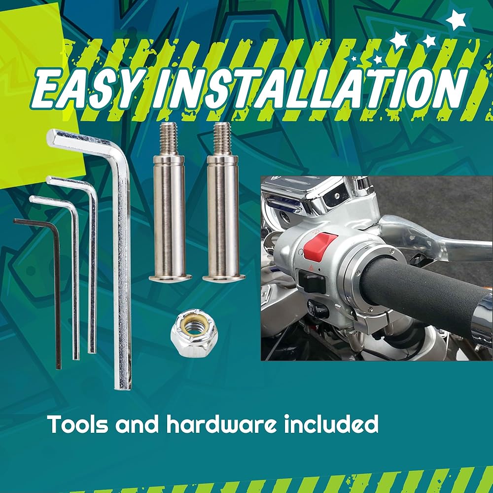• الإعداد - سيعمل نظام التحكم في السرعة هذا مع Harley 1996 والموديلات الأحدث مع كابل الخانق. تسمح الحشوات المطاطية القابلة للتبديل بالاستخدام مع جميع مقابض كابلات Harley Davidson. لن يعمل مع TBW والمقابض الساخنة