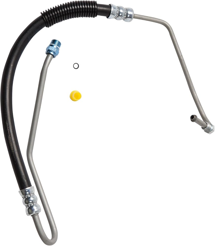 Edelmann power steering assemblies include high pressure hose where specified by OEM's. Pressure Hose and return hose covers are highly resistant to oil, heat and ozone which cause ordinary assemblies to fail prematurely. Tube construction withstands internal oil temperatures of up to 300 degrees Fahrenheit. Double piles of high-tensile strength braided fabric help Edelmann pressure and cylinder line hose to withstand pulsation pressures up to 1, 500 psi and bursting pressures up to 8, 900 psi. Tubing is Pro-coated or terne coated and couplings and fittings are zinc-chromate plated for rust and corrosion protection. The uniform crimping process ensures a long-lasting connection and the ferrule ends are flared to prevent pinching or cutting of the hose under tight-bend conditions. Tapered crimp design relieves stress and eliminates tube fatigue. Mounting brackets are included where applicable to ensure a perfectly aligned, stable installation. If the OE utilizes a non-reusable feature, Edelmann duplicates that feature on its aftermarket product. Heat shields and convoluted sheathing designed to protect the hose are additional examples of Edelmann commitment to quality.