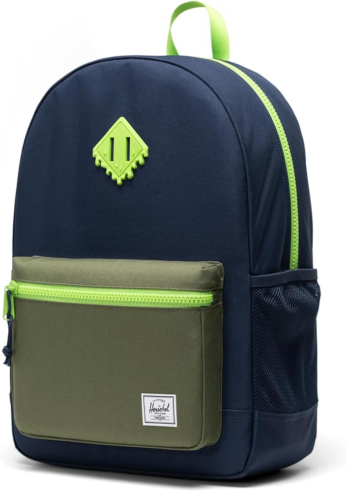 SIGNATURE HERSCHEL DESIGN: Featuring the iconic rubber diamond detail, Herschel brand logo, and a customizable label for kids to write their names, this backpack combines classic Herschel style with personalized touches for a unique and recognizable look.