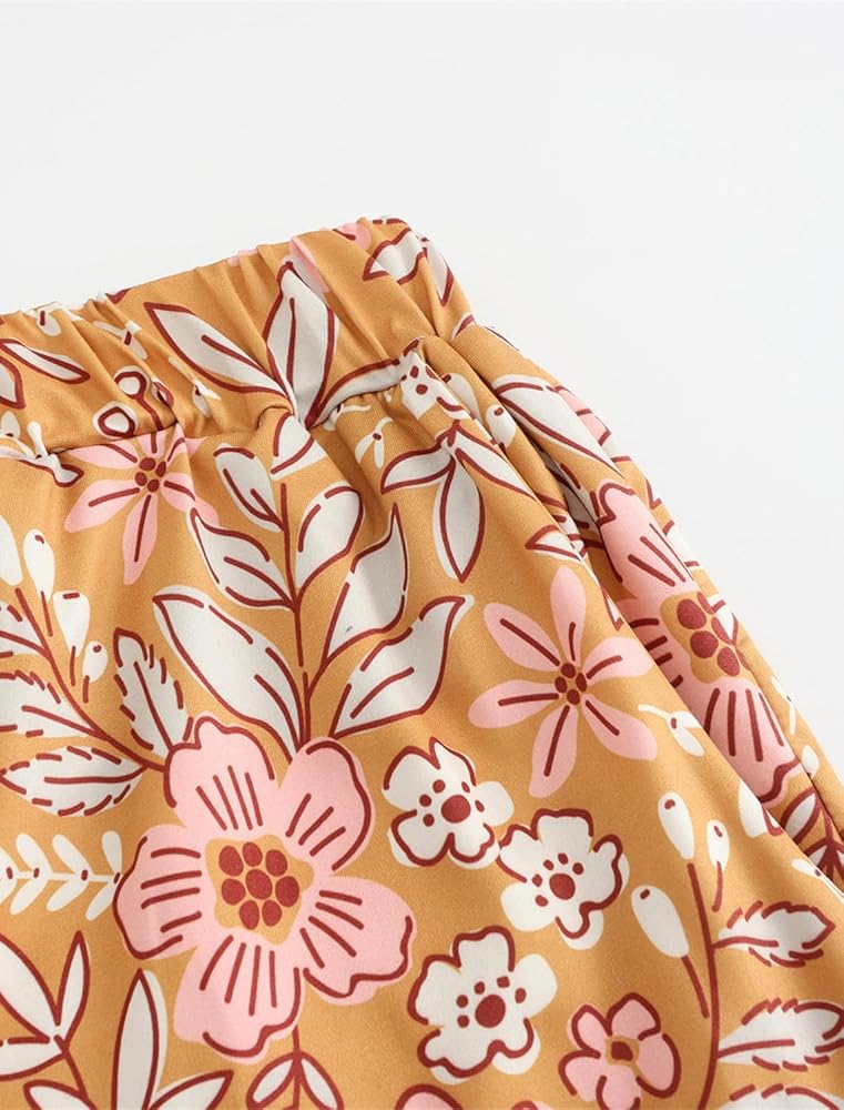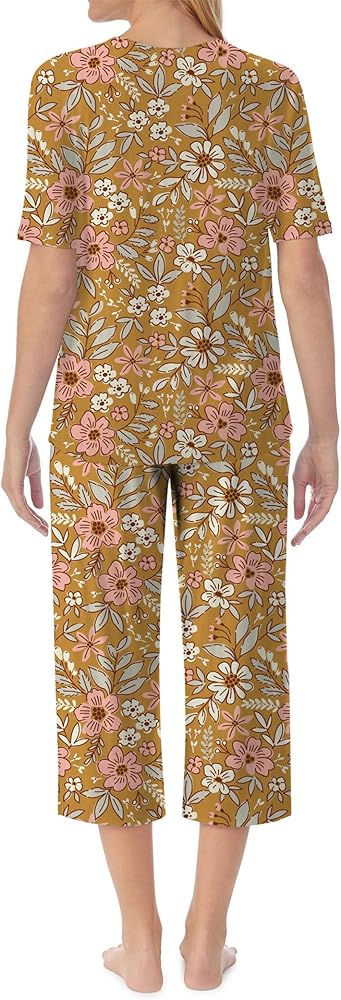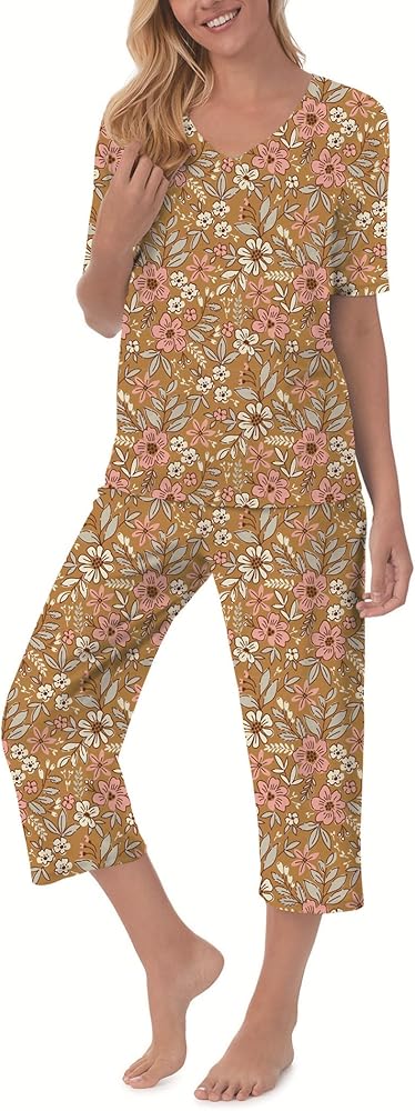 تصميم لطيف: تتضمن مجموعة البيجامة المطبوعة هذه المكونة من قطعتين قميصًا بأكمام قصيرة ورقبة على شكل حرف V وبنطلون كابري مع جيوب، وتتميز بحزام خصر مرن وتوفر مجموعة متنوعة من خيارات الطباعة الزهرية والحيوانات وغيرها من خيارات الطباعة حسب اختيارك.