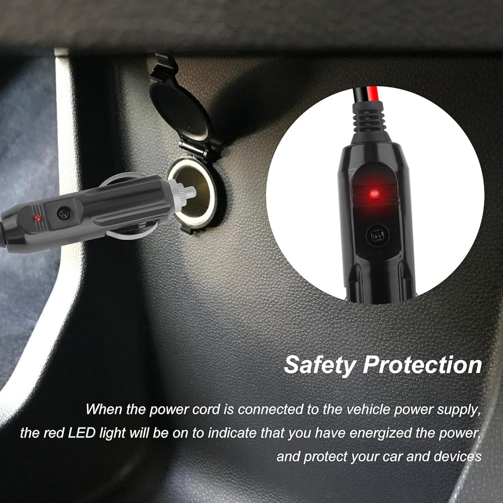Safety Protection: When the power cord is connected to the vehicle power supply, the red LED light will be on to indicate that you have energized the power, which can avoid multiple operations and protect your car and devices