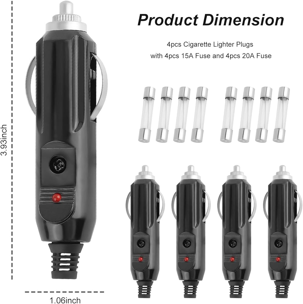 Package Includes: 2pcs Cigarette Lighter Plugs with 2pcs 15A Fuse and 2pcs 20A Fuse./ 4pcs Cigarette Lighter Plugs with 4pcs 15A Fuse and 4pcs 20A Fuse.