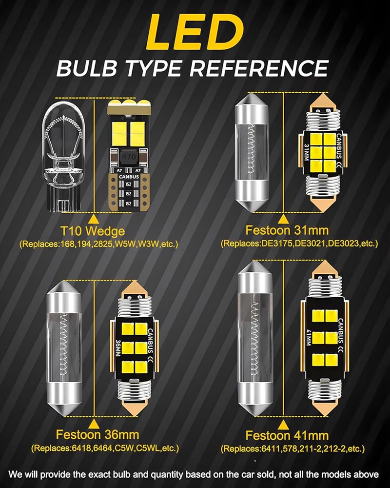 أكثر سطوعًا بنسبة 350% -- اللون: أبيض 6000 كلفن؛ طقم الإضاءة الداخلية LED 3030 يضيء الجزء الداخلي للسيارة، وهو أكثر سطوعًا بنسبة 350% من مصابيح الهالوجين الأصلية. سوف ترى بوضوح داخل السيارة في الليل!
