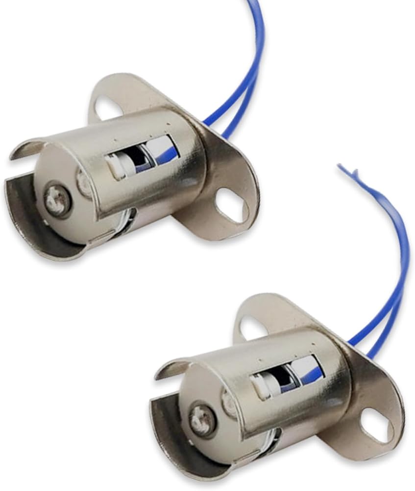 jokormo 2 PCS Automotive 1156 LED Brake Light Lamp Holder, Metal Female Plug with Base and Dual Harness Wires, Single Contact Snap-in Socket Assembly, Universal Light Bulb Connector for Cars (Silver)