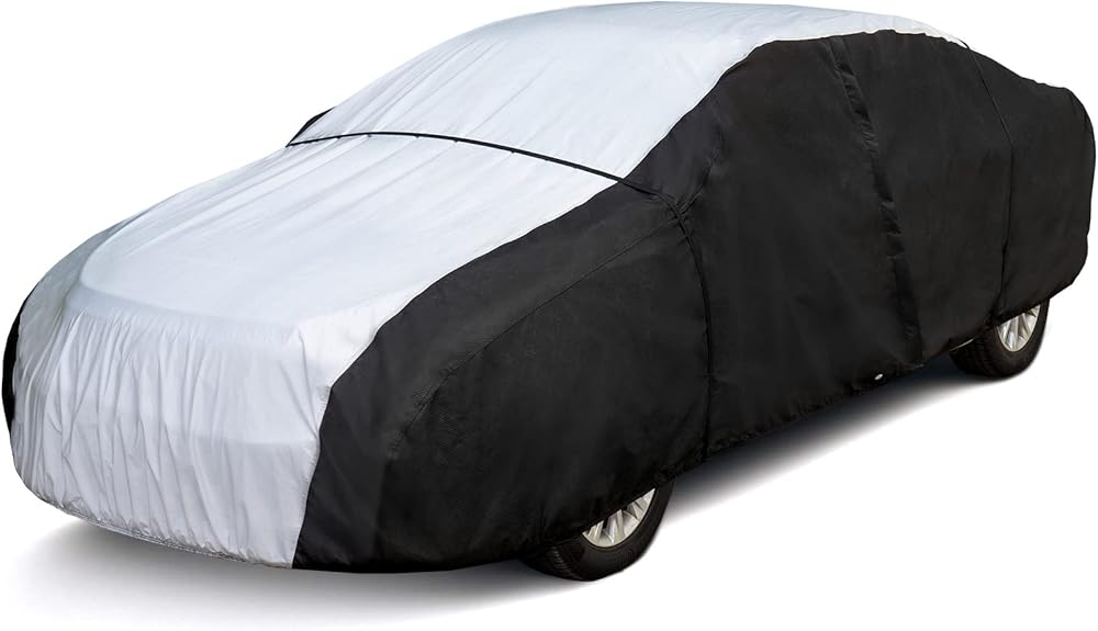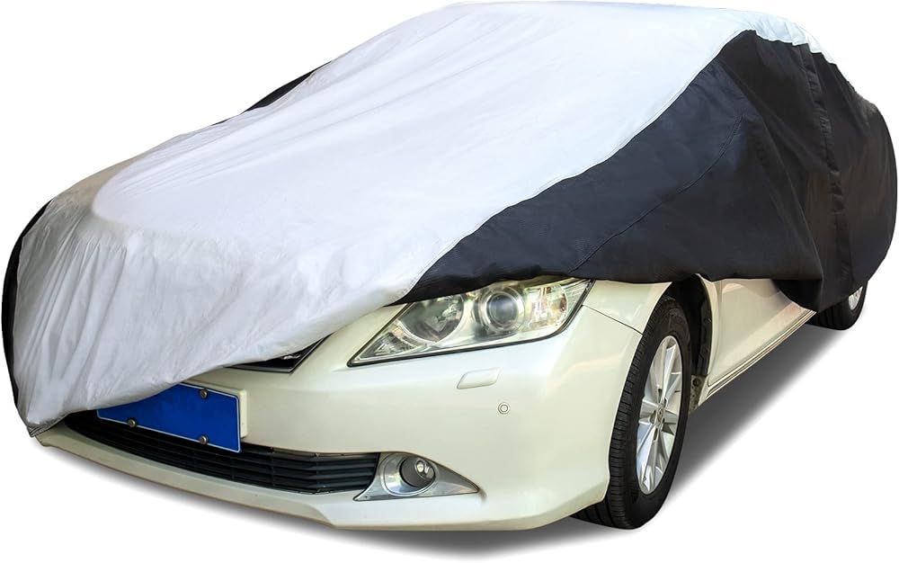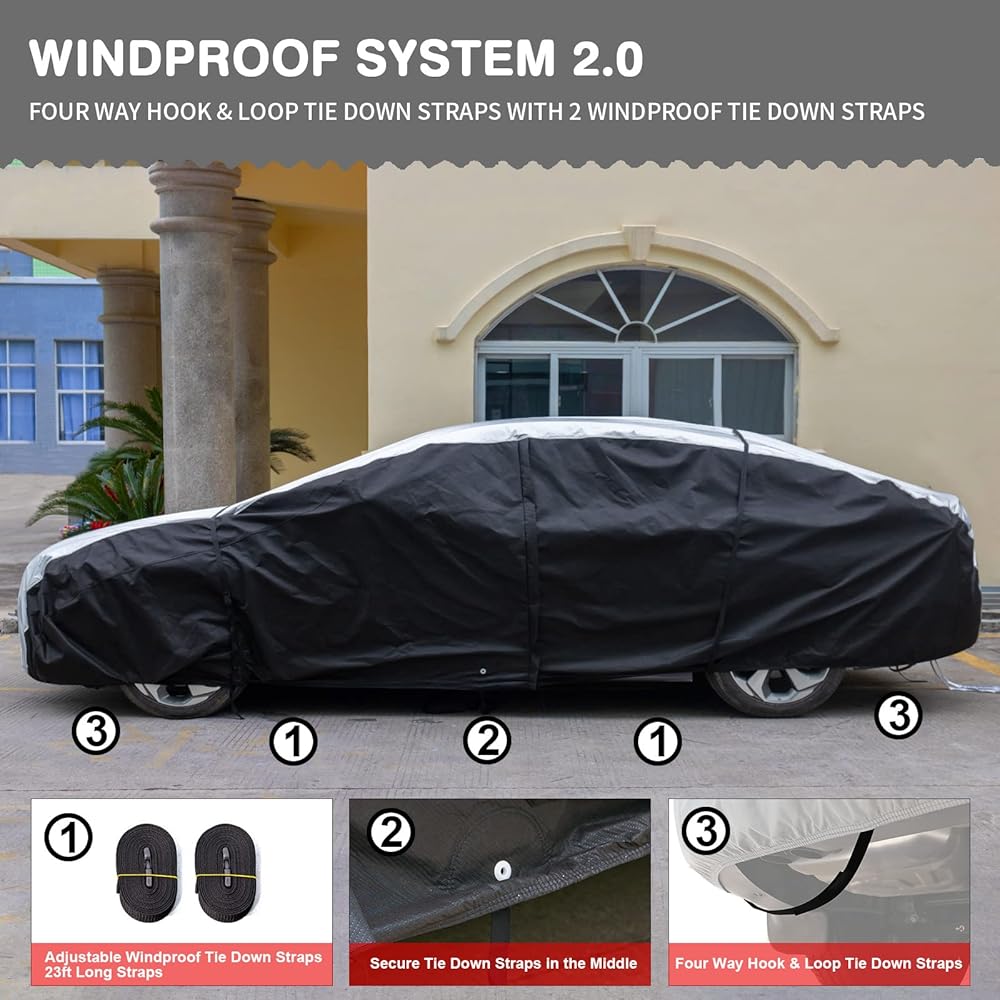 غطاء سيارة مقاوم للماء من شركة Leader Accessories للسيارات في جميع الأحوال الجوية، 7 طبقات من الألومنيوم والقطن، غطاء خارجي كامل مع باب بسحاب، وحزامين إضافيين مقاومين للرياح يناسب سيارة سيدان حتى 228 بوصة