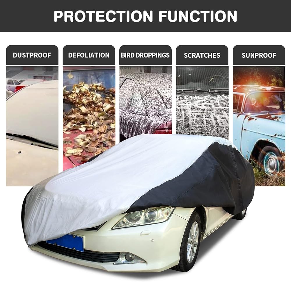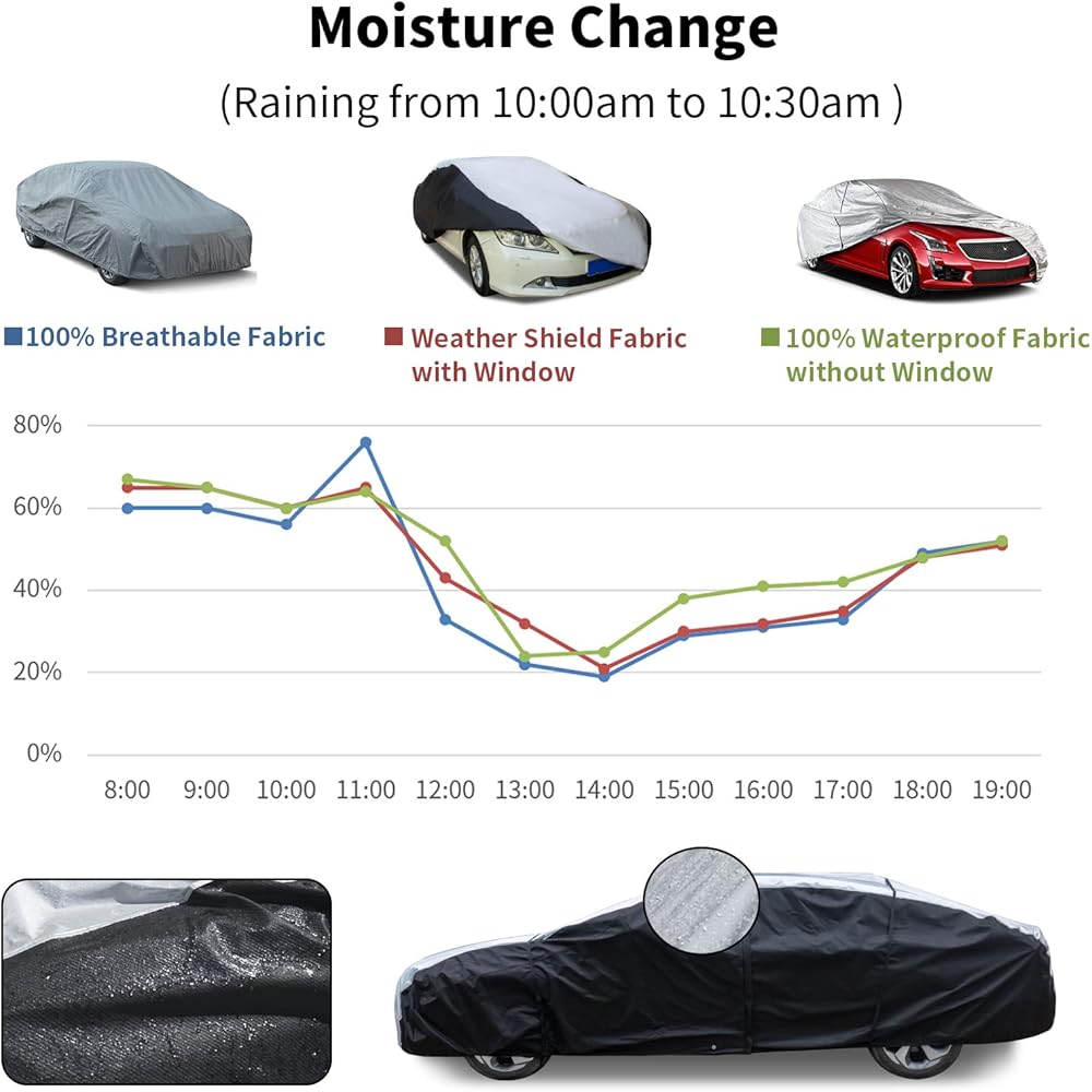 【مقاوم للماء وقابل للتنفس】غطاء السيارة الخاص بنا مصنوع من مادة مقاومة للماء تمنع دخول الماء إلى الداخل بينما تسمح للرطوبة بالهروب.