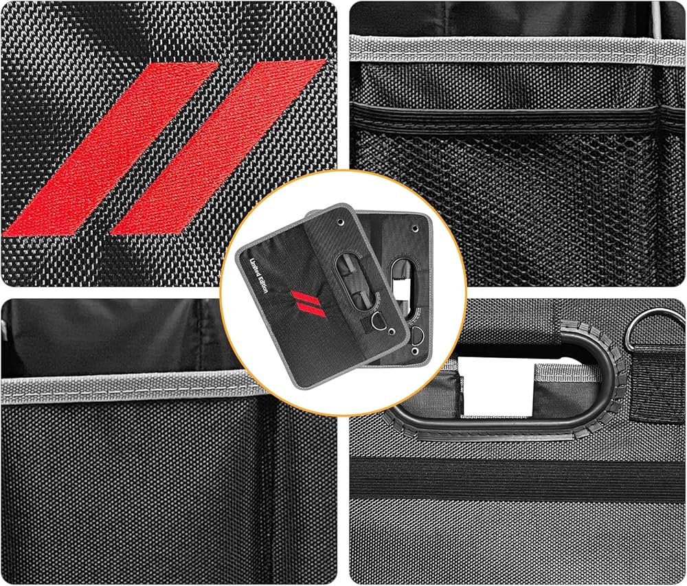 • 【مادة متينة】منظم صندوق السيارة مصنوع من قماش أسود مع كل لوحة مصنوعة من مادة بوليستر أكسفورد 600D عالية الجودة، معززة بورق مقوى 2 مم لضمان بيئة تخزين قوية وآمنة.