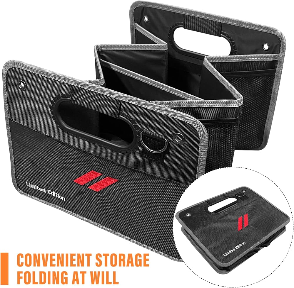 منظم صندوق السيارة، صندوق تخزين صندوق السيارة مع مقبض لسيارة دودج تشارجر تشالنجر، صندوق تخزين سيارات قابل للطي مكون من جزأين، ملحقات سفر من بوليستر أكسفورد المقاوم للماء (نوع B)