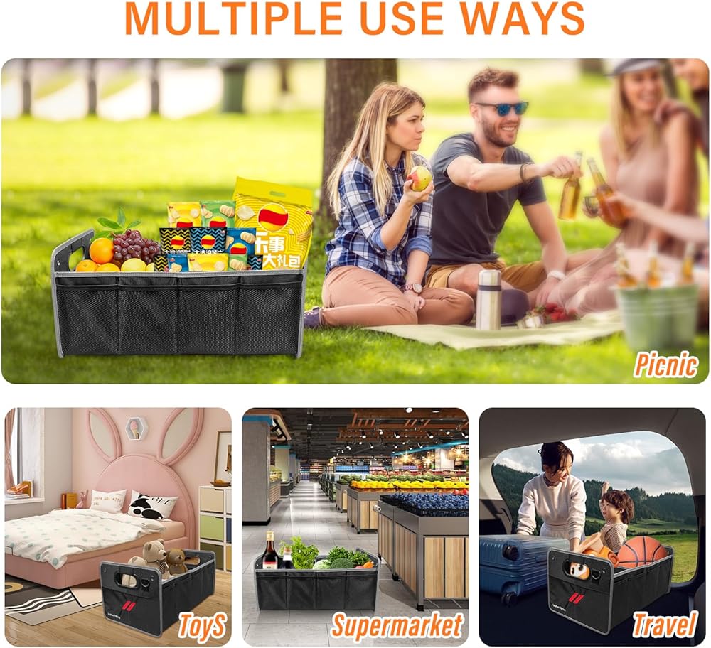 • [متعدد الأغراض] لا يستخدم فقط كمنظم تخزين السيارة كإكسسوارات للسيارة، ولكن أيضًا يمكن أن يكون صندوق تخزين للحياة اليومية، والذي يناسب أشتات منزلية مثل الكتب والملابس وحقائب التسوق ومستلزمات التخييم وأوراق المكتب والقرطاسية.