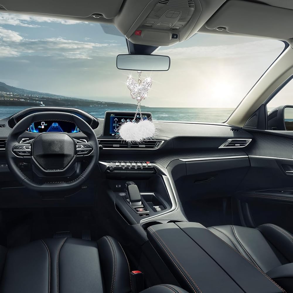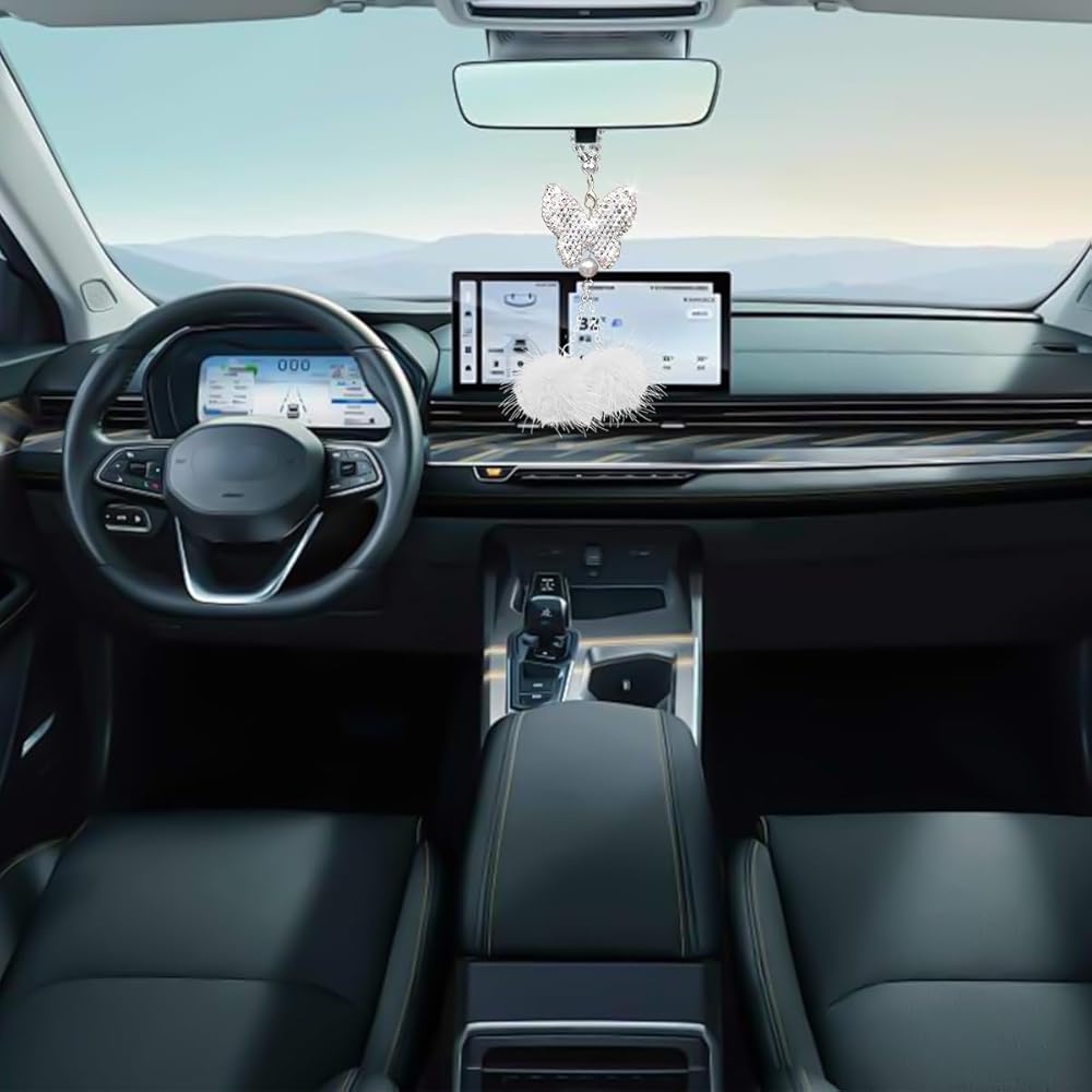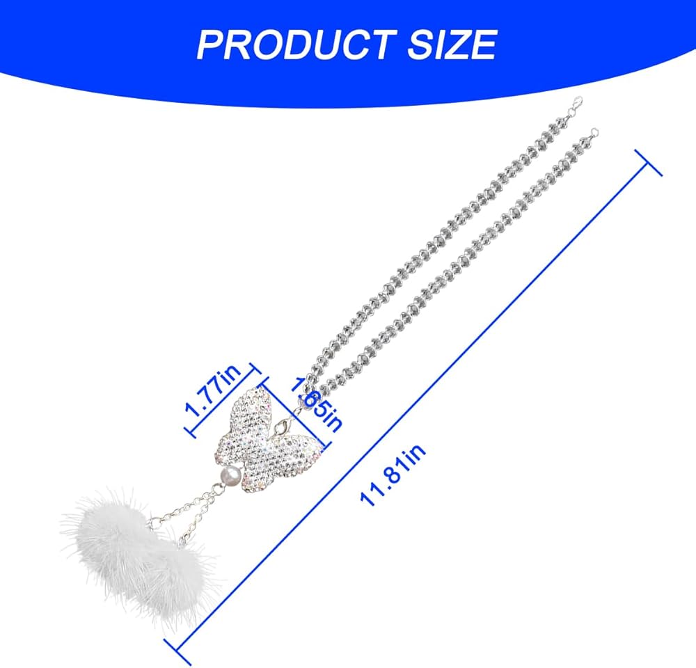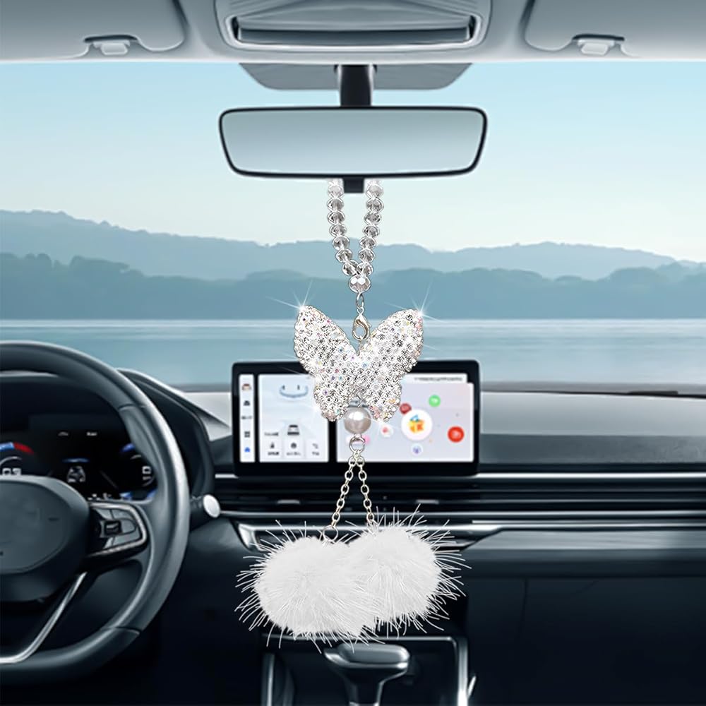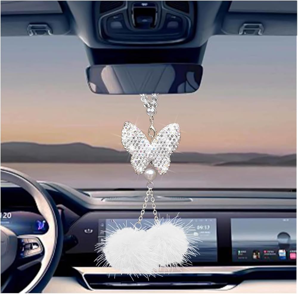 【Unique Design】: This car interior pendant consists of a bling butterfly and two hairballs. Its design is very beautiful, combining the crystal clarity and transparency and the elegant form of the butterfly, which can add a sense of elegance and style to the car interior. And it supports personalisation, you can choose different colours of the fur balls according to your preference and needs, to create your own unique style.