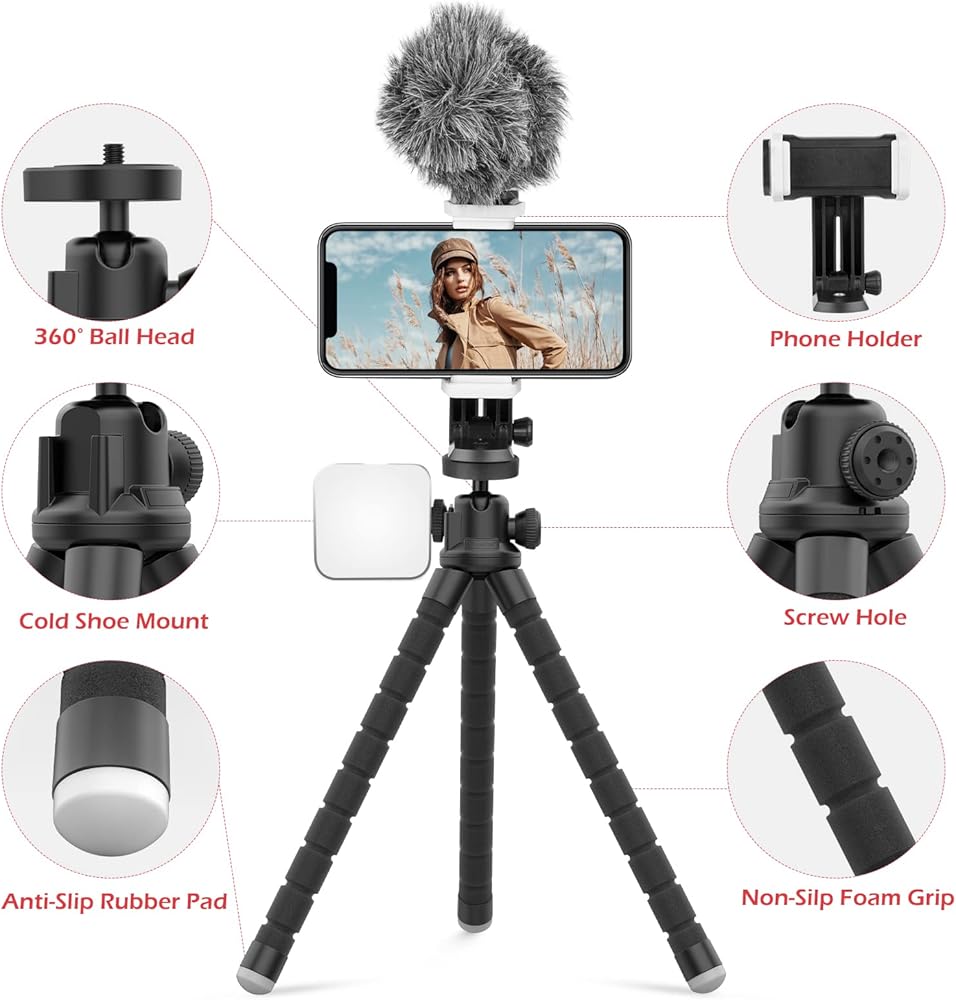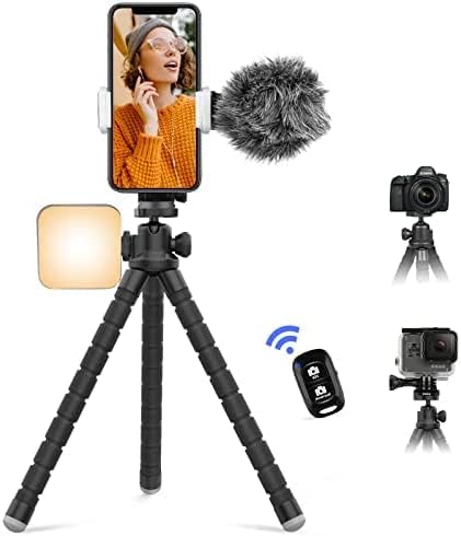 حامل ثلاثي للهاتف الخلوي من Aureday، حامل ثلاثي صغير مرن مع جهاز تحكم عن بعد وحذاء بارد، حامل ثلاثي صغير لتسجيل الفيديو، تسجيل الفيديو، متوافق مع الميكروفونات، الهاتف المحمول، الكاميرا، Gopro أسود