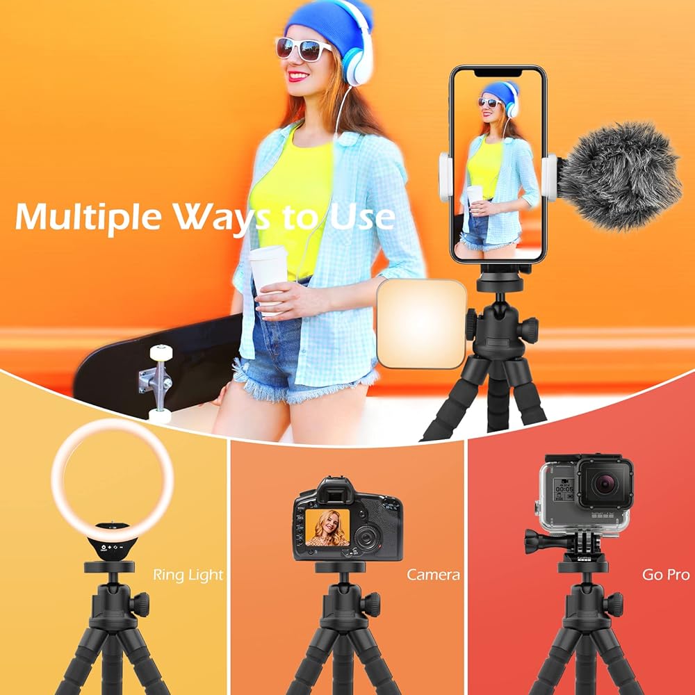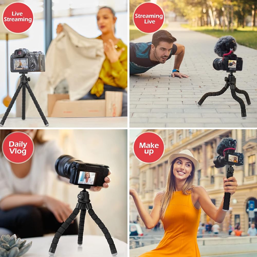 • 【حامل ثلاثي القوائم خفيف الوزن وصغير الحجم】تسمح لك الأرجل المرنة للغاية بثنيها على الفور إلى أي زاوية من أجل إعداد سهل، ويمكنك حتى لف الأرجل حول أشياء مثل السور للحصول على تنوع إضافي في تركيبات اللقطات والإطارات. بالإضافة إلى ذلك، يمكن فرد هذا الحامل الثلاثي المرن بسهولة للتخزين أو وضعه في حقيبة الظهر للسفر أو التنزه سيرًا على الأقدام أو التخييم، أو حتى العمل كعصا سيلفي.