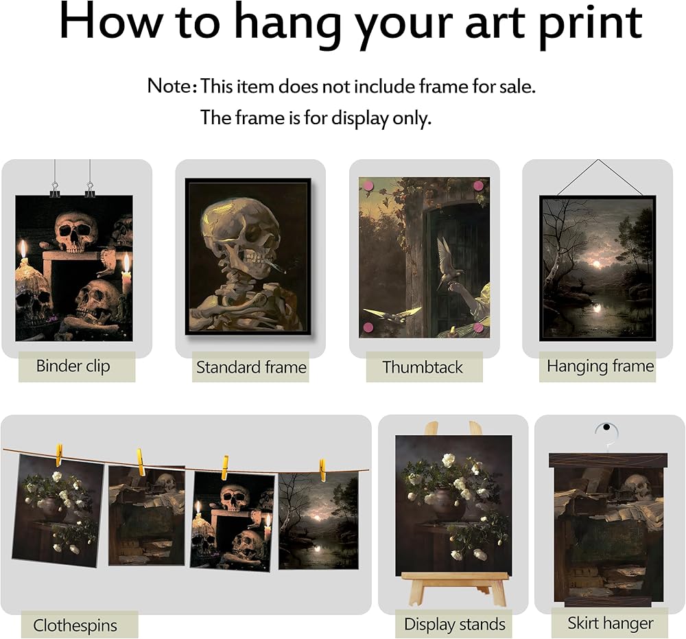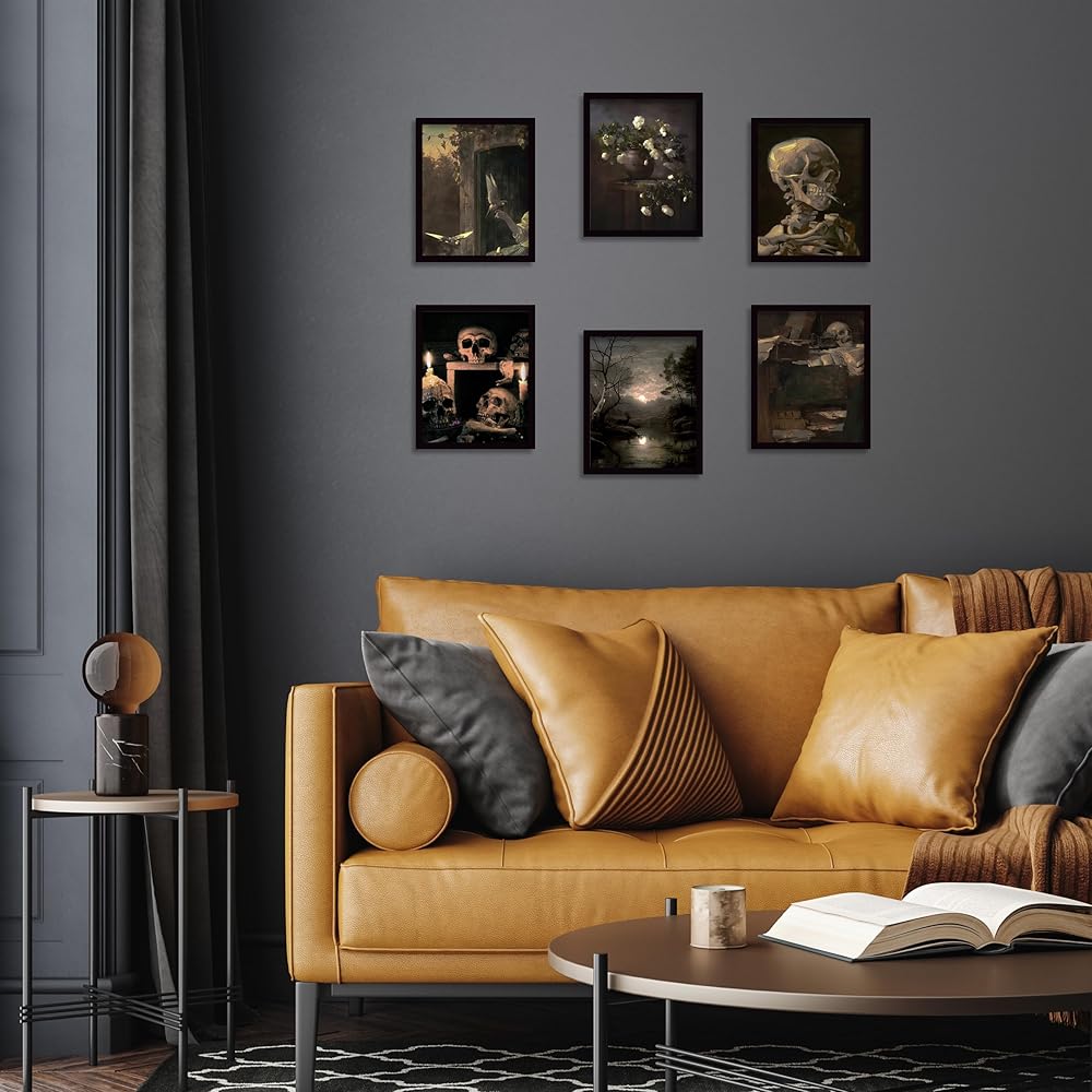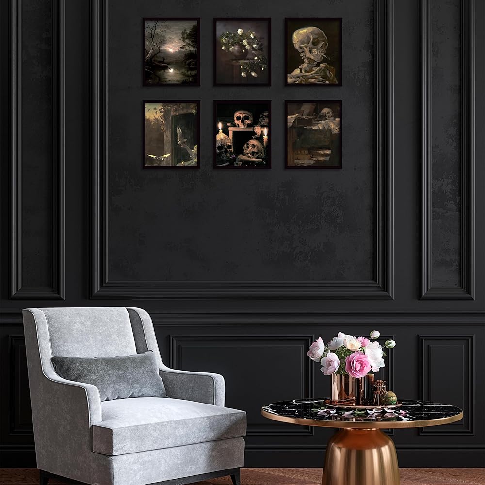 Gothic Wall Art Set of 6 Dark Academia Room Decor Goth Vintage Wall Art Prints Grunge Aesthetic Wall Decor
