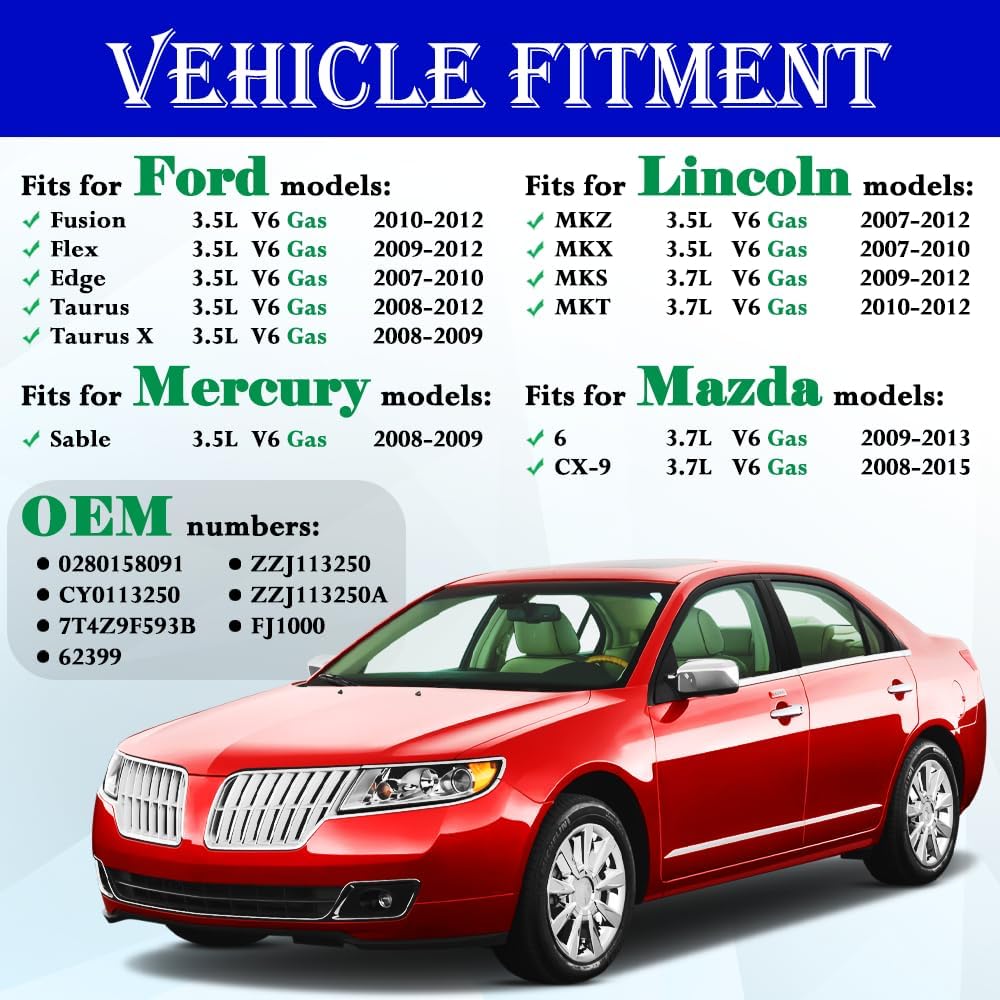 • 【الإعداد】- متوافق مع Ford: Fusion V6 3.5L 2010-2012، Flex V6 3.5L 2009-2012، Edge V6 3.5L 2007-2010، Taurus V6 3.5L 2008-2012، Taurus X V6 3.5L 2008-2009. متوافق مع لينكولن: MKZ V6 3.5L 2007-2012، MKX V6 3.5L 2007-2010، MKS V6 3.7L 2009-2012، MKT V6 3.7L 2010-2012. متوافق مع مازدا: 6 V6 3.7L 2009-2013، CX-9 V6 3.7L 2008-2015. متوافق مع ميركوري: سابل V6 3.5L 2008-2009.